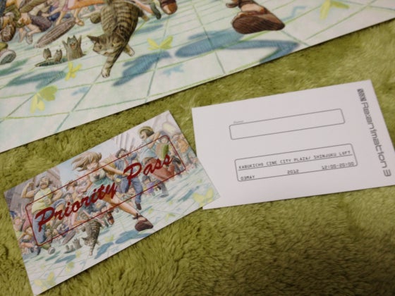 ■リアニメーションからCAMPFIREのリターン開封時には中の物を一緒に切らないようにご注意ください週末に発送したリターンが、昨日から皆さまの手元に届いているかと思いますが、こちらを開封する際にはさみを使って封筒の口を切った所、中に入っていたイラストシートも一緒に切断してしまったという報告がありました。A4用封筒にA4のイラストシートを封入しておりますので、通常であれば口からイラストシートまで多少余裕があるのですが、今回はクッション封筒でお送りした関係で、封筒の口ギリギリにイラストシートやプライオリティパスがある可能性があります。開封の際には刃物を使わずに開けていただくか、刃物で開封される際には十分ご注意ください。■既に破損してしまった場合既にイラストシートやプライオリティパス、CDを破損してしまっている場合には、新品と交換させていただきます。プライオリティパスこれから再発送すると当日までに受け取りが間に合わない可能性がございますので、当日破損したプライオリティパスを持参いただければ、新しいものと交換いたします。イラストシート・CDイラストシートとCDについては恐れ入りますが、後日郵送にて交換とさせていただきます。破損したイラストシート、もしくはCDを着払いでこちらに送っていただければ、折り返し新しいものを発送いたします。もし、破損された方がおられました、 info@reanimation.jp までご連絡ください。破損した品の送り先をお伝え致します。以上、よろしくお願いいたします。