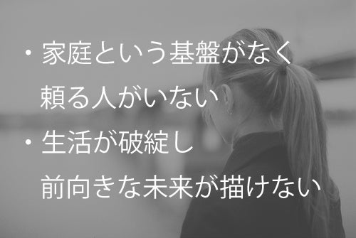 人間関係につまづき、衣食住のことしか考えられないギリギリの経済状況では、明るい未来を描くことは難しくなります。前向きな気持ちになれず、時に自暴自棄になってしまうのも無理はありません。