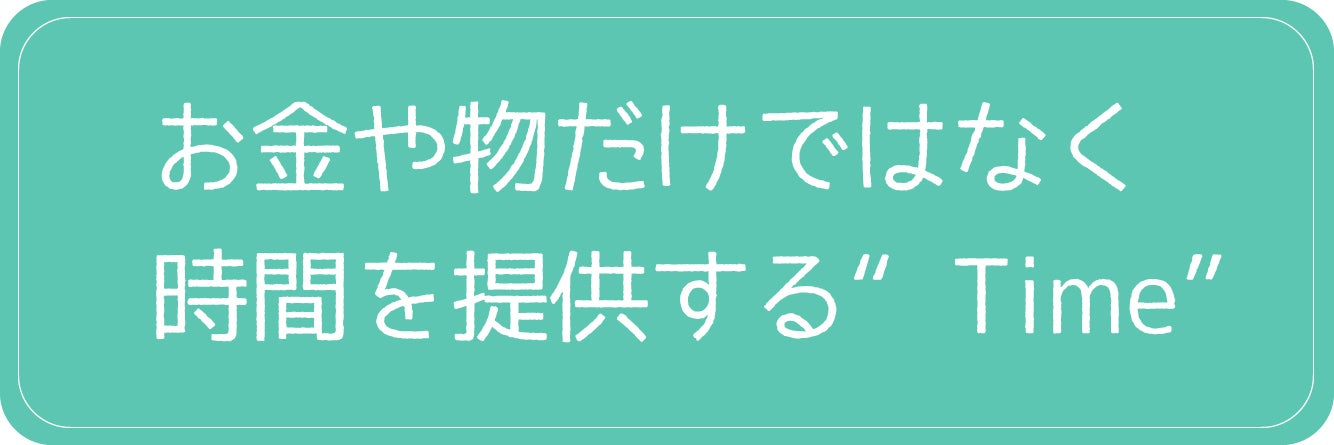 Time(時間)は、お金の支援だけでなく「子どもたちと遊ぶための”時間”を提供する」団体です。「人生の宝探し」を目標に、長期的に同じ子どもの成長を見守ることを大切にしています。