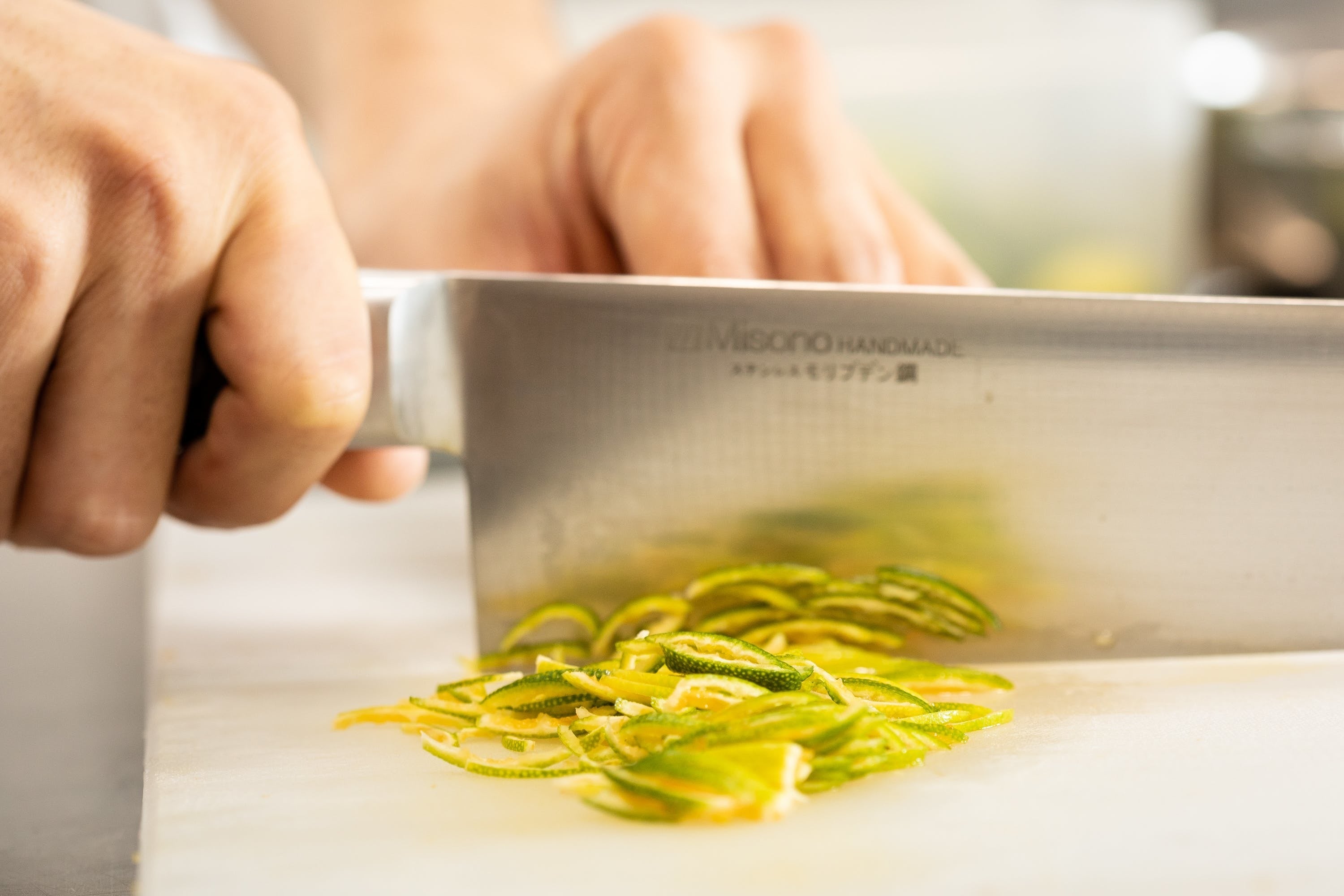 2年前に青摘みみかんの存在を知ってからその爽やかな酸味や香りに注目していましたが、それが様々な事情から捨てられてしまっているものであると聞き、とても残念に思っていました。私はシェフとして以前から生産者に還元することに強い関心があったのですが、今まで様々な産地に赴きたくさんの食材をお店で使用してきた中で、やはりお店で使うだけでは生産者の力になるにも限界があると感じていました。今回青摘みみかんをブランド化するプロジェクトのお話を聞いてこれなら私が感じていた問題の解決に繋がるのではと思っています。