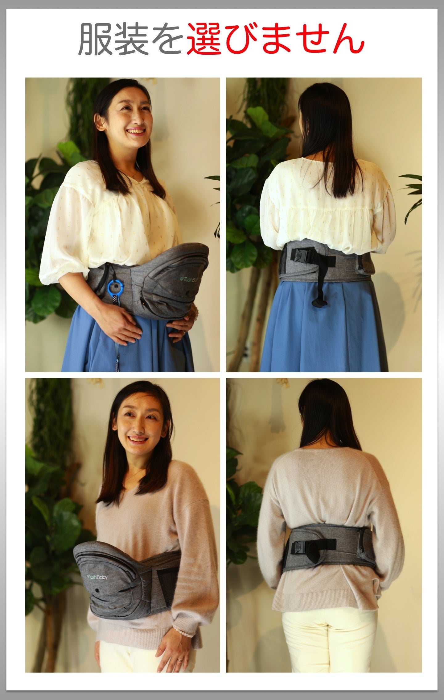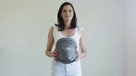 TushBabyをくるっと腰に回してベルトで固定するだけです!