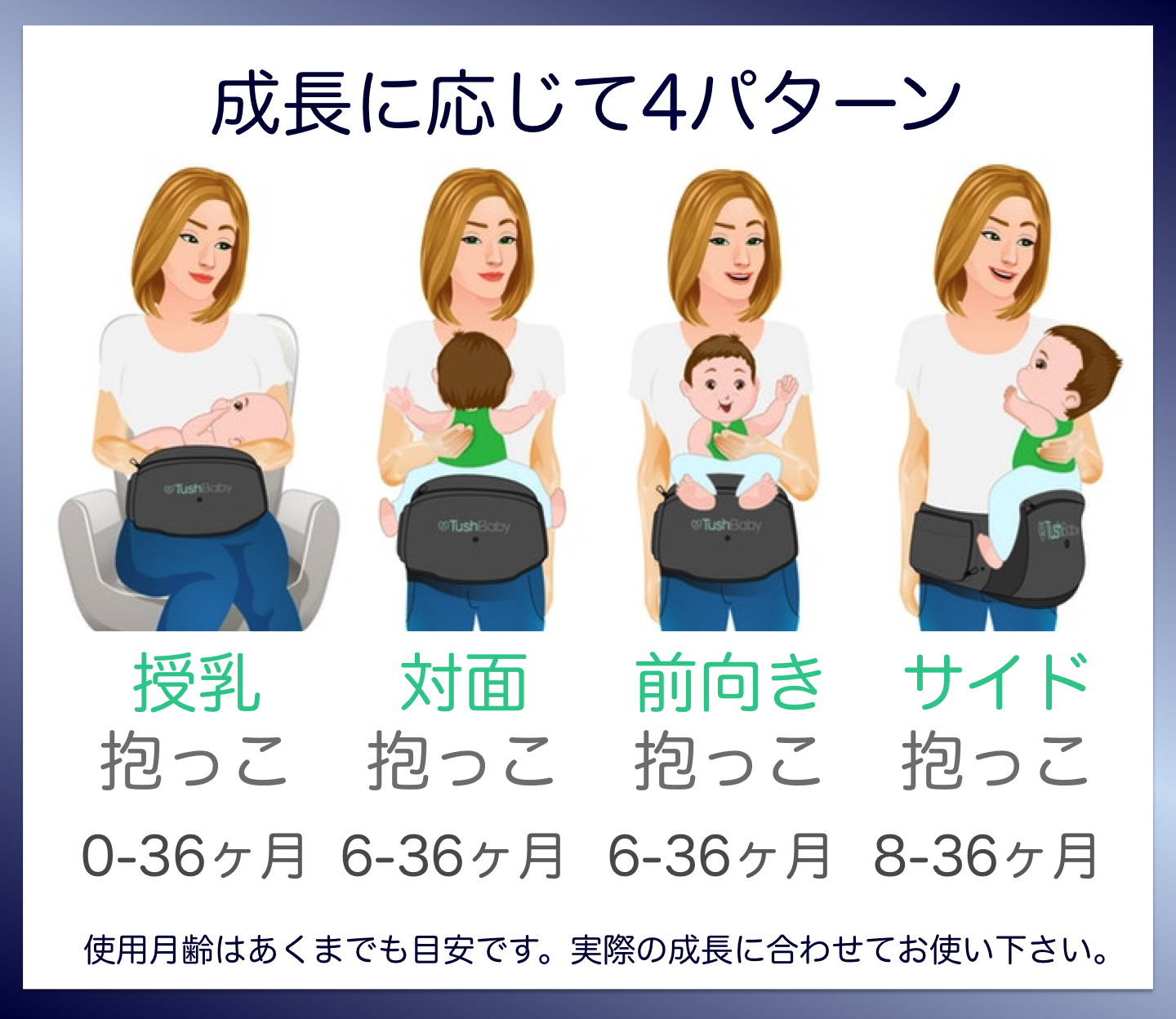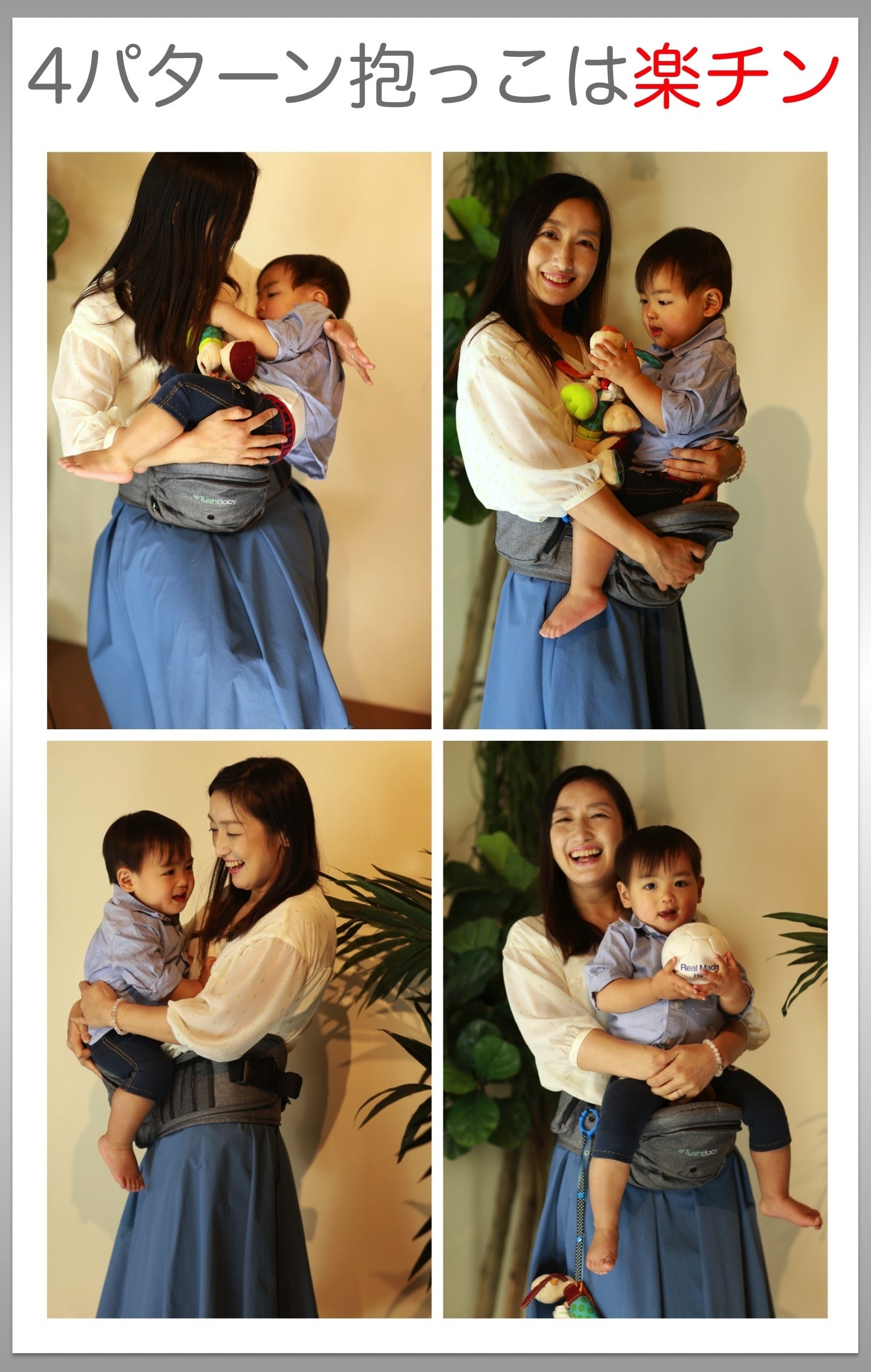 TushBabyは使用目的に合わせて4つの抱っこが出来ます。