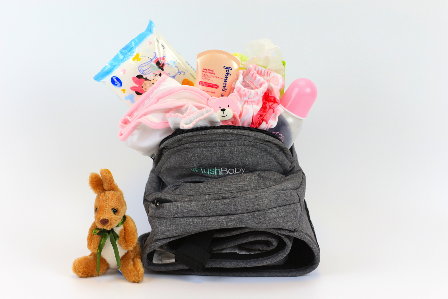 子供のお気に入りのおもちゃをTushBabyに付けることが出来ます。