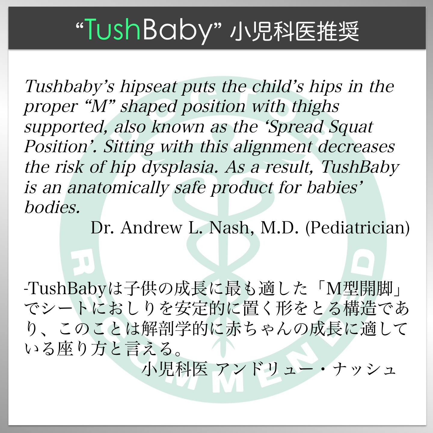 Q:”TushBaby”は赤ちゃんの肌に触れても大丈夫な素材ですか?