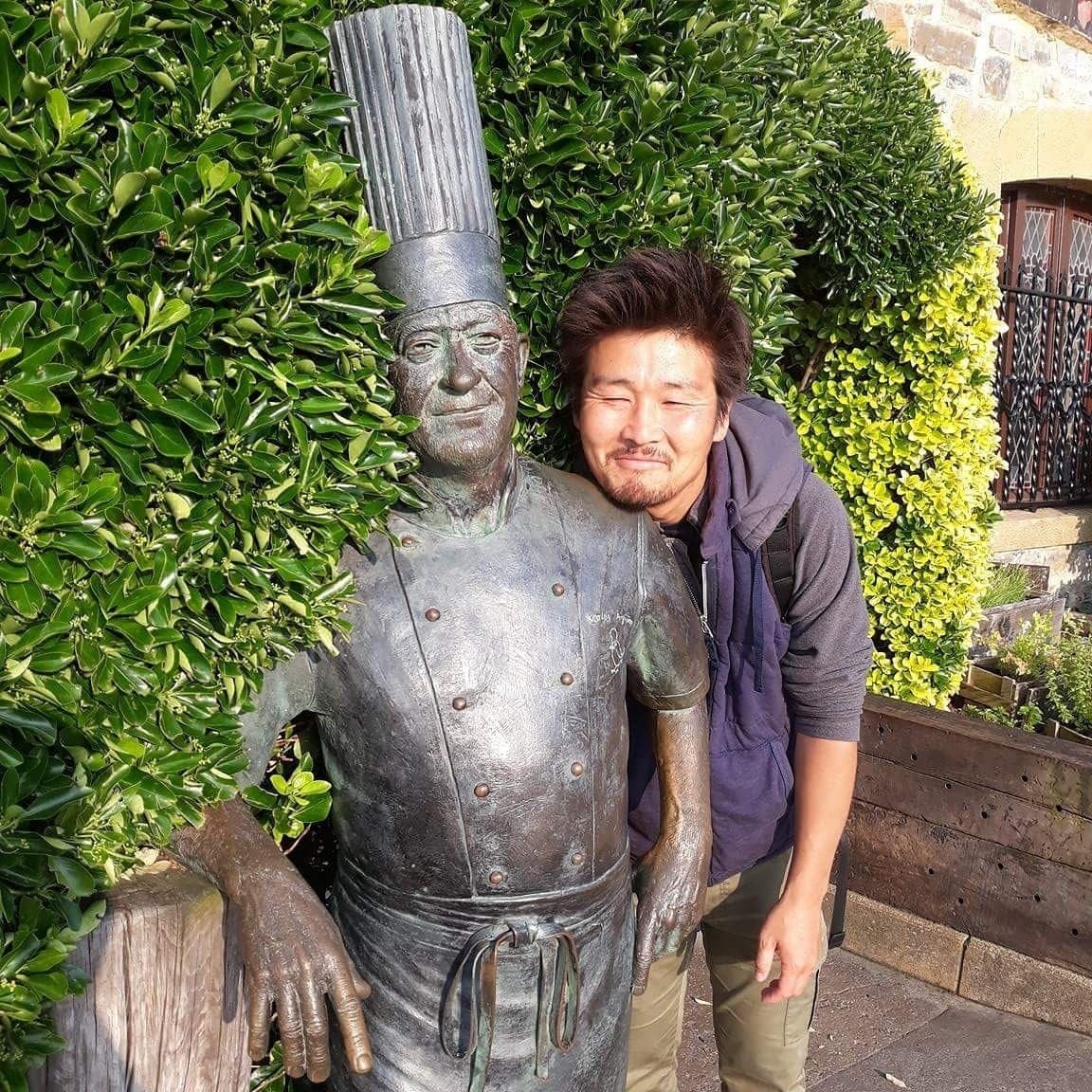 また、ふとしたきっかけで「旅」に目覚めてしまい27歳の時に2年弱の時間をかけて世界一周の旅に出て、各国で食べた料理や、宿で出会った人たちと料理をして食事を共にする事の楽しさに影響され、料理人になりたい思いをより強くし、帰国後29歳にしてイタリア料理店の門をくぐり、フレンチとイタリアンの技法をベースに創作の要素を取り入れた料理に励んでいます。