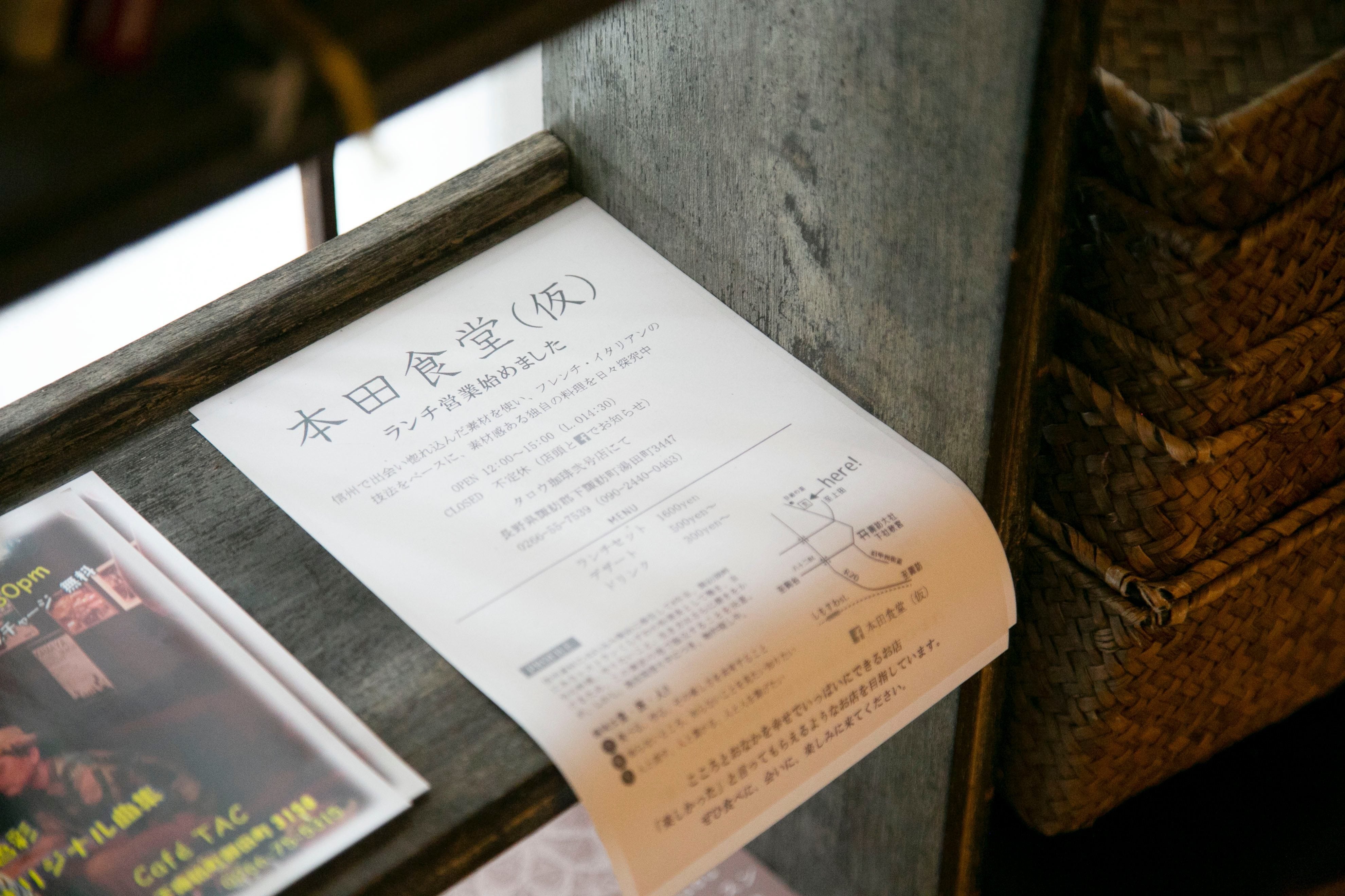 こんにちは!長野県の下諏訪の広瀬町でレストラン「本田食堂」の開業準備をしている本田 由剛ともうします。