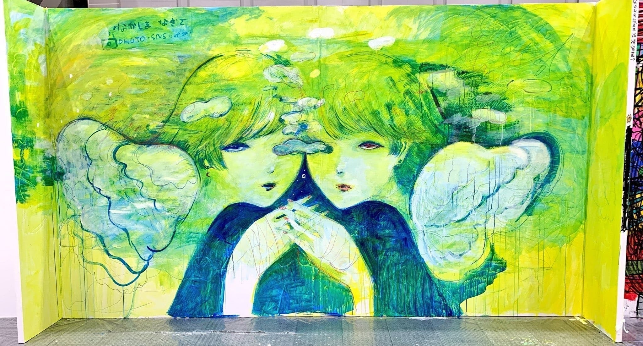 ポゴとなかしまなぎさの描くライブペインティングを実際にその場でご覧いただけます。