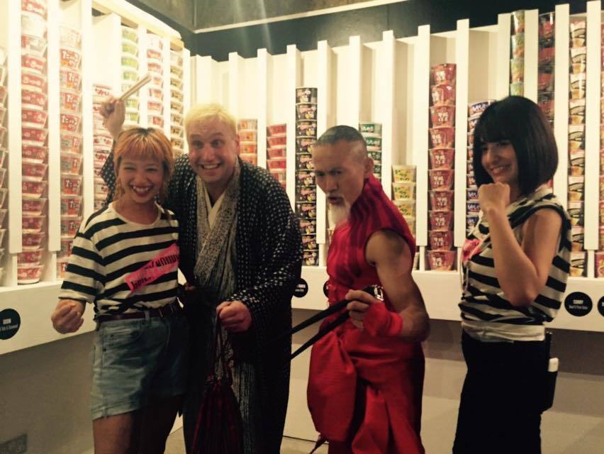 写真:ロンドンのメンバー、りえさんが手がけるギルティヌードルのPR。カナダ人落語家の桂三輝さんも参加されています。
