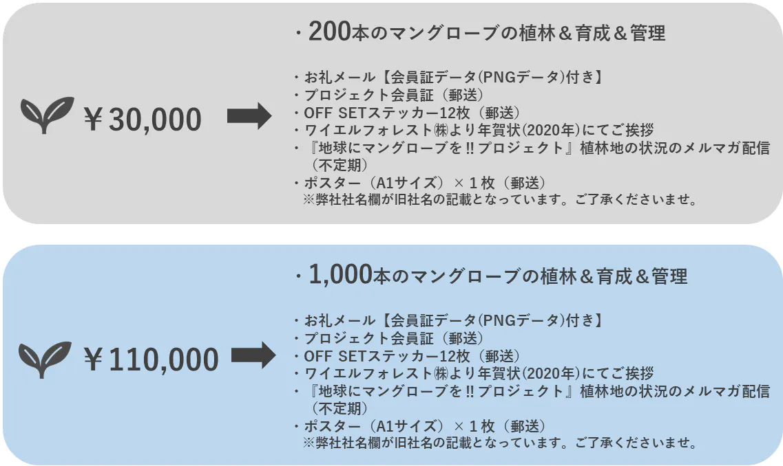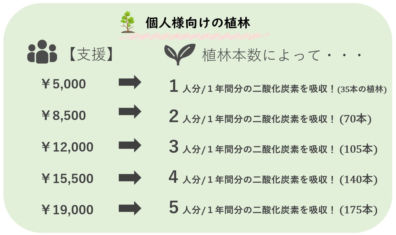 ・植林に必要な実費(種を植える・育てる・30年間維持・管理する)