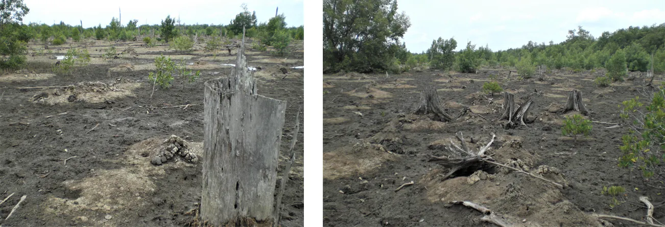 マングローブ伐採後、養殖池として使用されたがその後放棄された池(ワイエルフォレスト撮影)