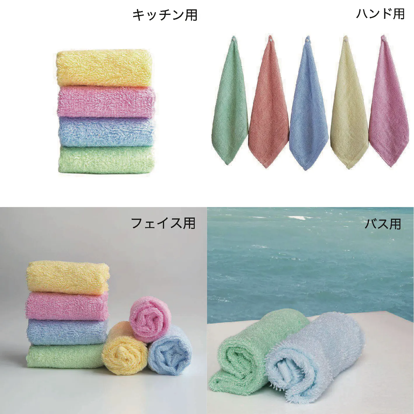 例え抗菌と表記があっても市販のタオルにはほとんど抗菌効果はありません。普通の繊維とは異なる多年生植物繊維を使用したこの素材は細菌を寄せ付けず、多くの微生物は繁殖することもできません!植物本来の力である質の高い抗菌力はこのタオルの特徴です!