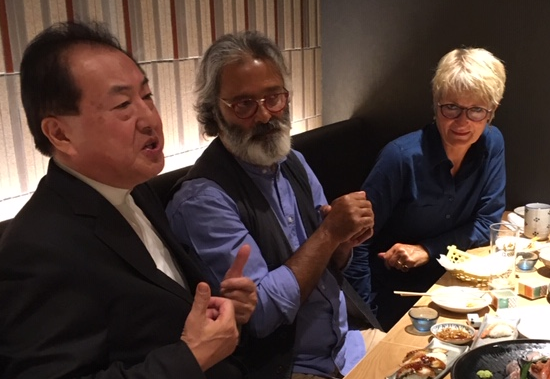 (札幌に来たヴァーマ氏(中央)とメイヤー氏(右)。向かい側には秋辺氏がいて議論白熱中。)