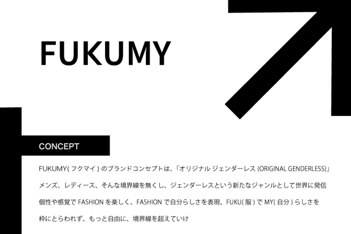 そこで私は今の世の中からFashionの差別、境界線をなくすために、世界にジェンダーレス(ユニセックス)ブランド「FUKUMY」を発信していきたいです。