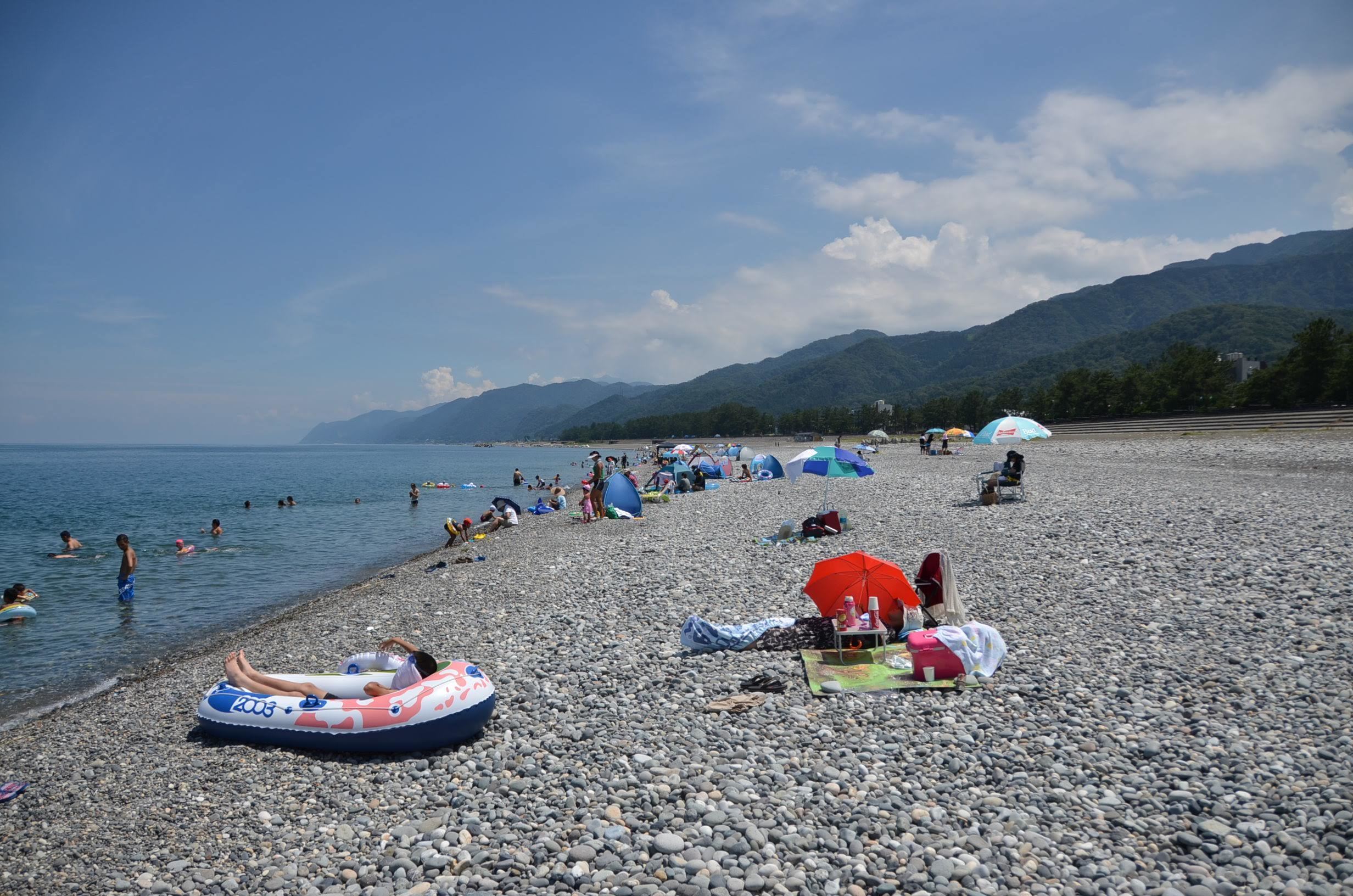 朝日町のヒスイ海岸は大きな石がおおく、座って休憩するスペースがありません。
