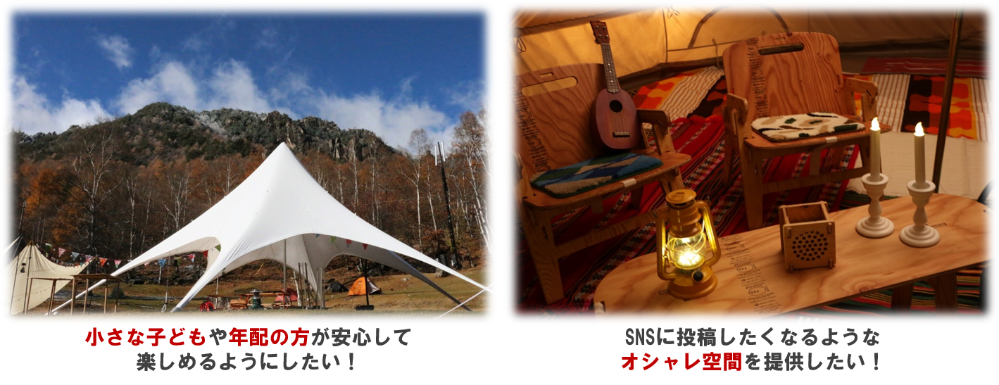しかしながら通常のグランピングテントとは異なり、足場が入り組んでいる海岸に設置する事や、海岸特有の突風などにも耐えれるような作りのテントやテーブル、椅子の用意に対してどうしても予算が取れず設置が難しいという問題に直面しました。