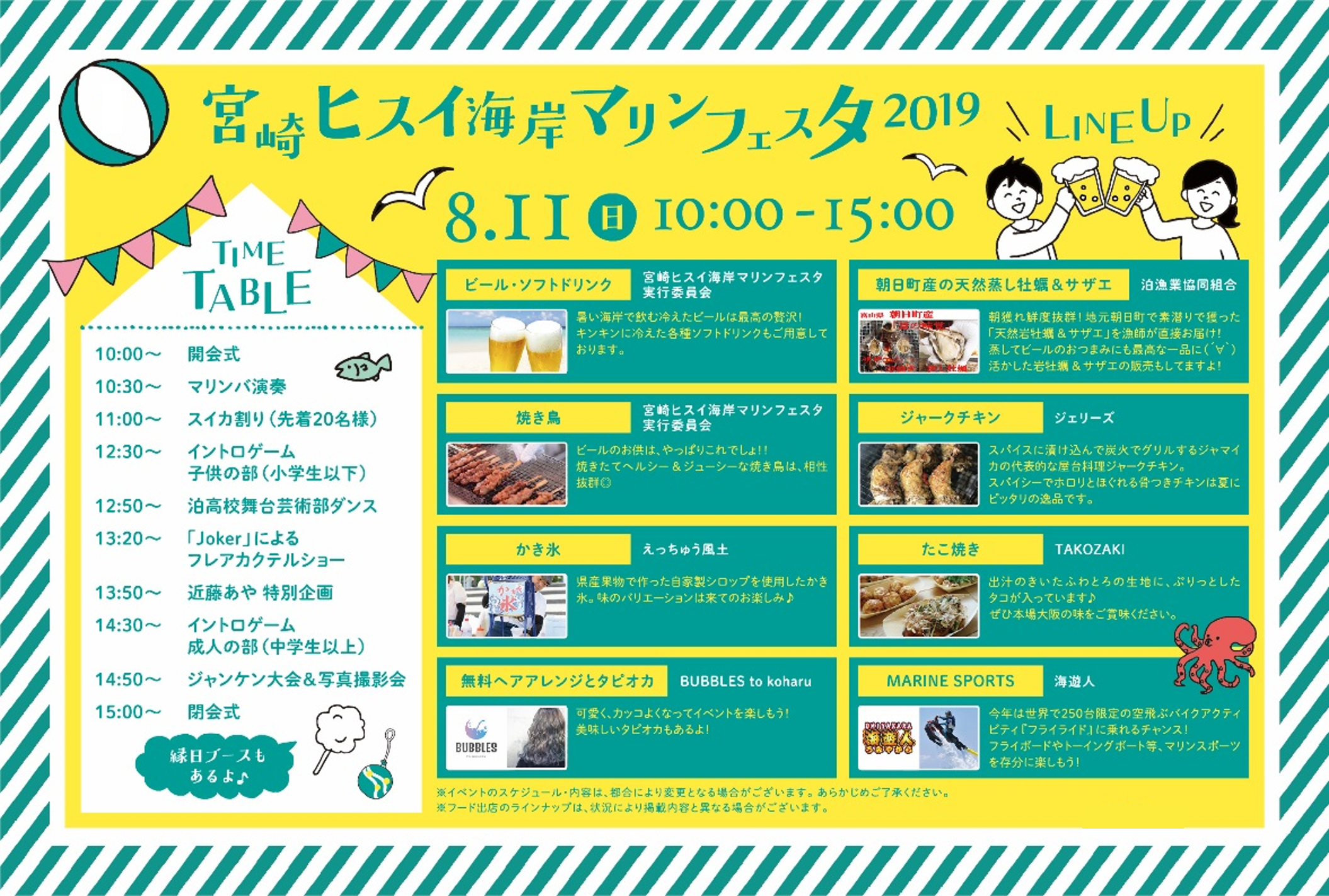 ※「宮崎ヒスイ海岸マリンフェスタ2019」は8/11のみの開催です