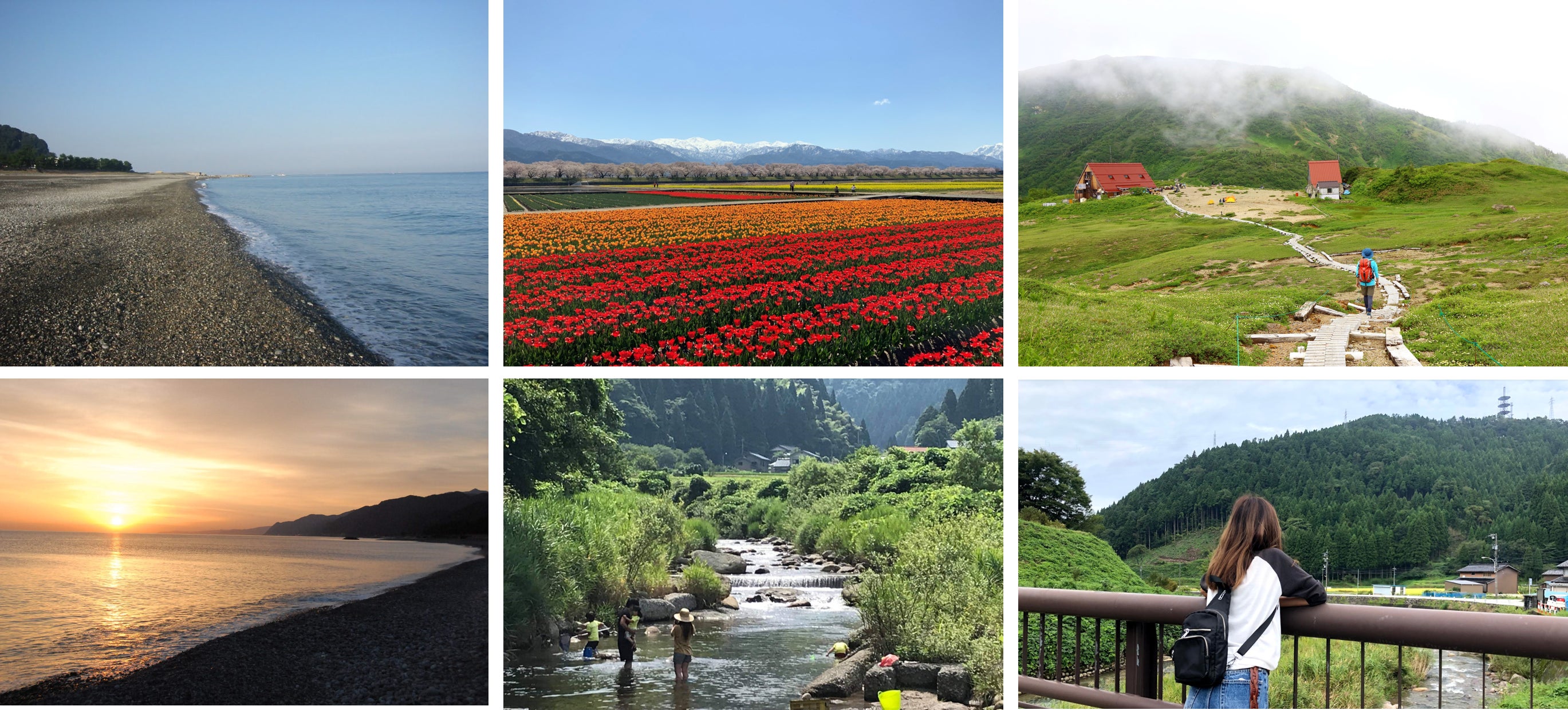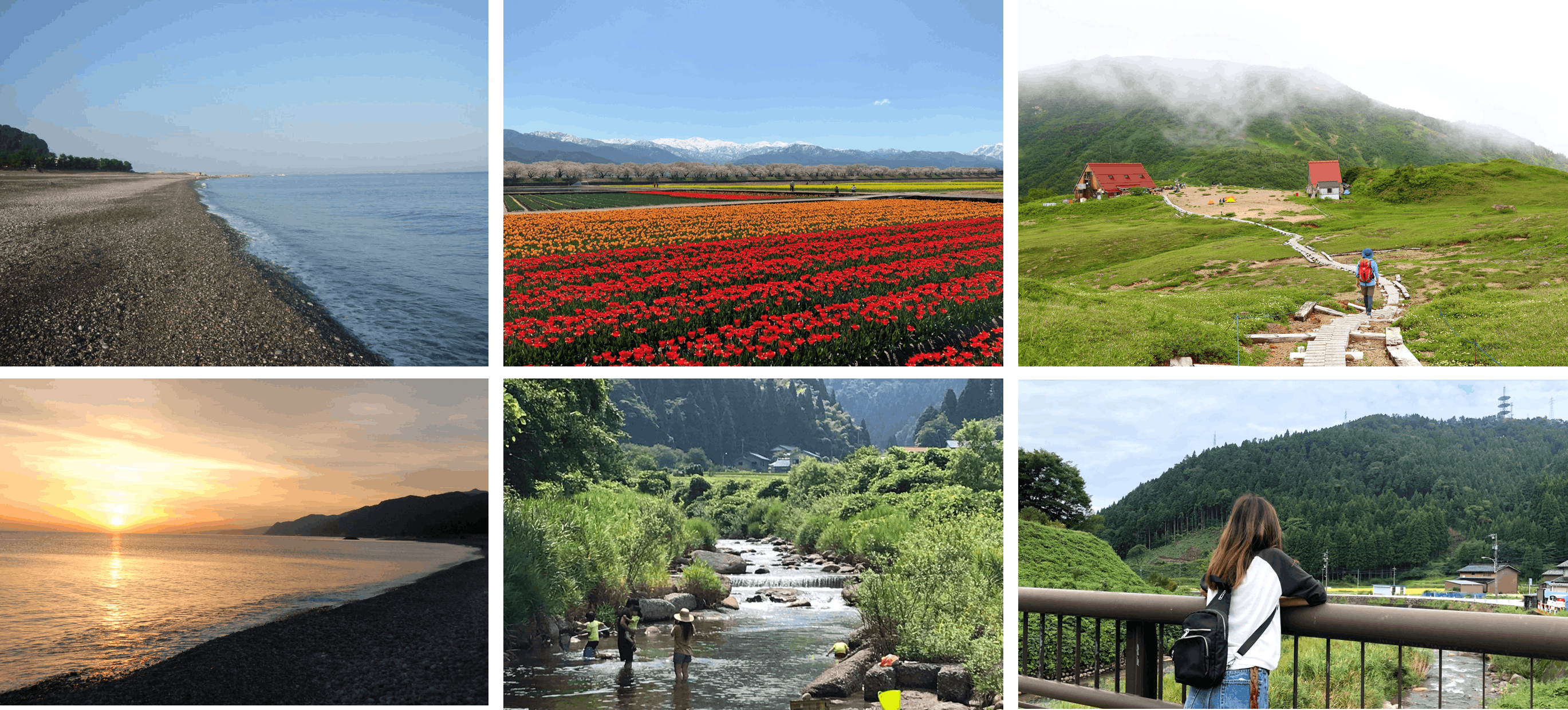 朝日町(あさひまち)は富山県の東端部にある人口1万2千人の町です。日本海(宮崎海岸)と標高3,000メートル級の北アルプスに面していて、海も山もあるとても自然に恵まれた町です。