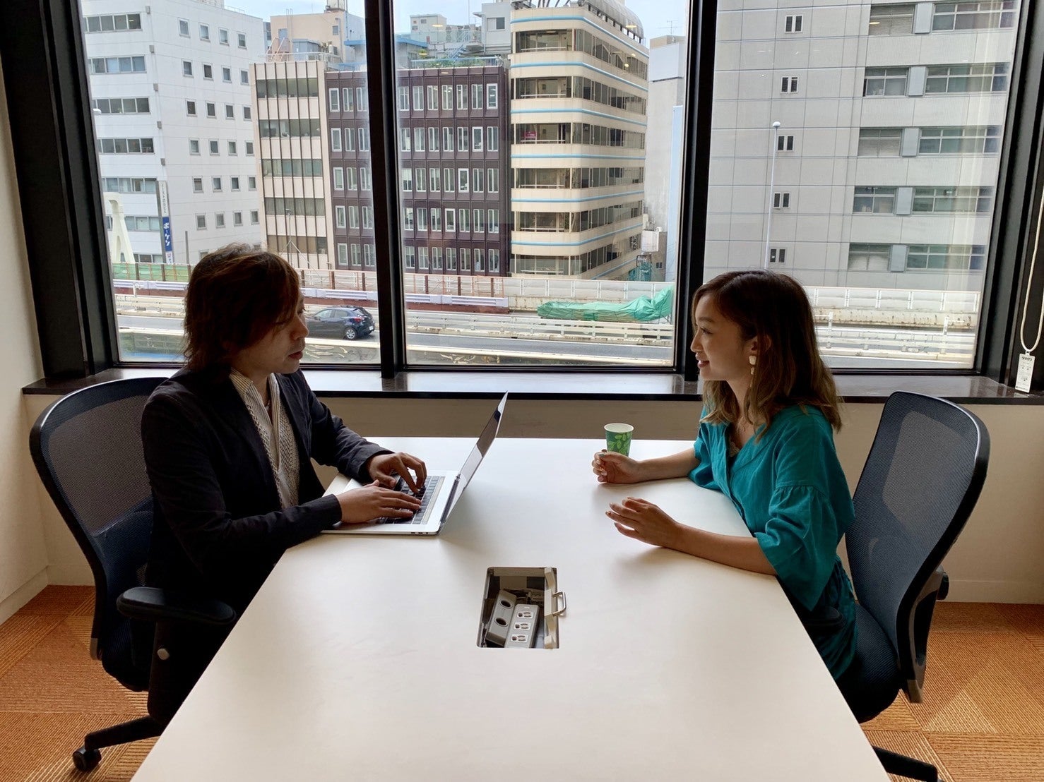 東京都渋谷にあるCAMPFIREのオフィスにて※なんと担当の奥村さんは富山出身!!