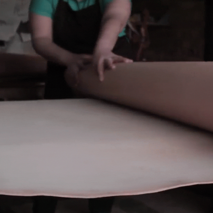 実際に完成品を手にするまで一年以上もかかりました。たくさんの種類がある革のなかから、より環境にやさしく、長く愛用できるベジタブルタンドレザーを採用しました。レザーをカットから、レザーと帆布をしっかり合わせるまで、専門の職人が丁寧に加工し作り上げます。