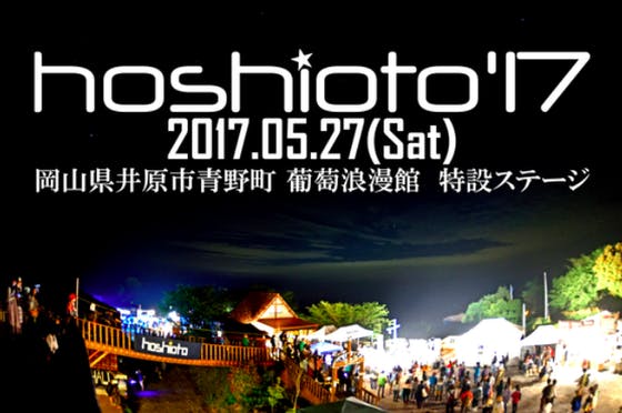 2017年のhoshiotoは同じ市内になる井原市青野町 葡萄浪漫館にて開催いたします。美星町から青野町に移動する事には色々と悩みましたが、自分達の地元である井原市であることには変わりはないということ、青野町は美星町と同様に山の上にあり、星がとても綺麗に見えること、そして今までの会場ではできなかったことに挑戦ができるという想いで変更するという決断をしました。