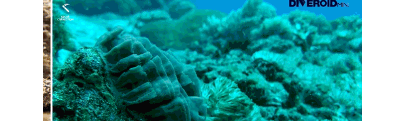 普段水中で取る写真の色はブルーやグリーンになりやすいです。ダイブロイドの色補正エンジンによって自然な写真が取れます。