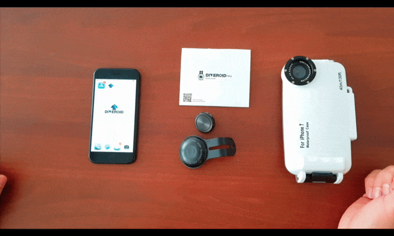 3、スキューバ用の防水ハウジングにスマホとDIVEROID miniを結合し、ダイビングが楽しめます。
