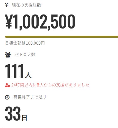 ご支援者も100名を超え、現在も支援者数を伸ばしております。改めてお礼申し上げます☆