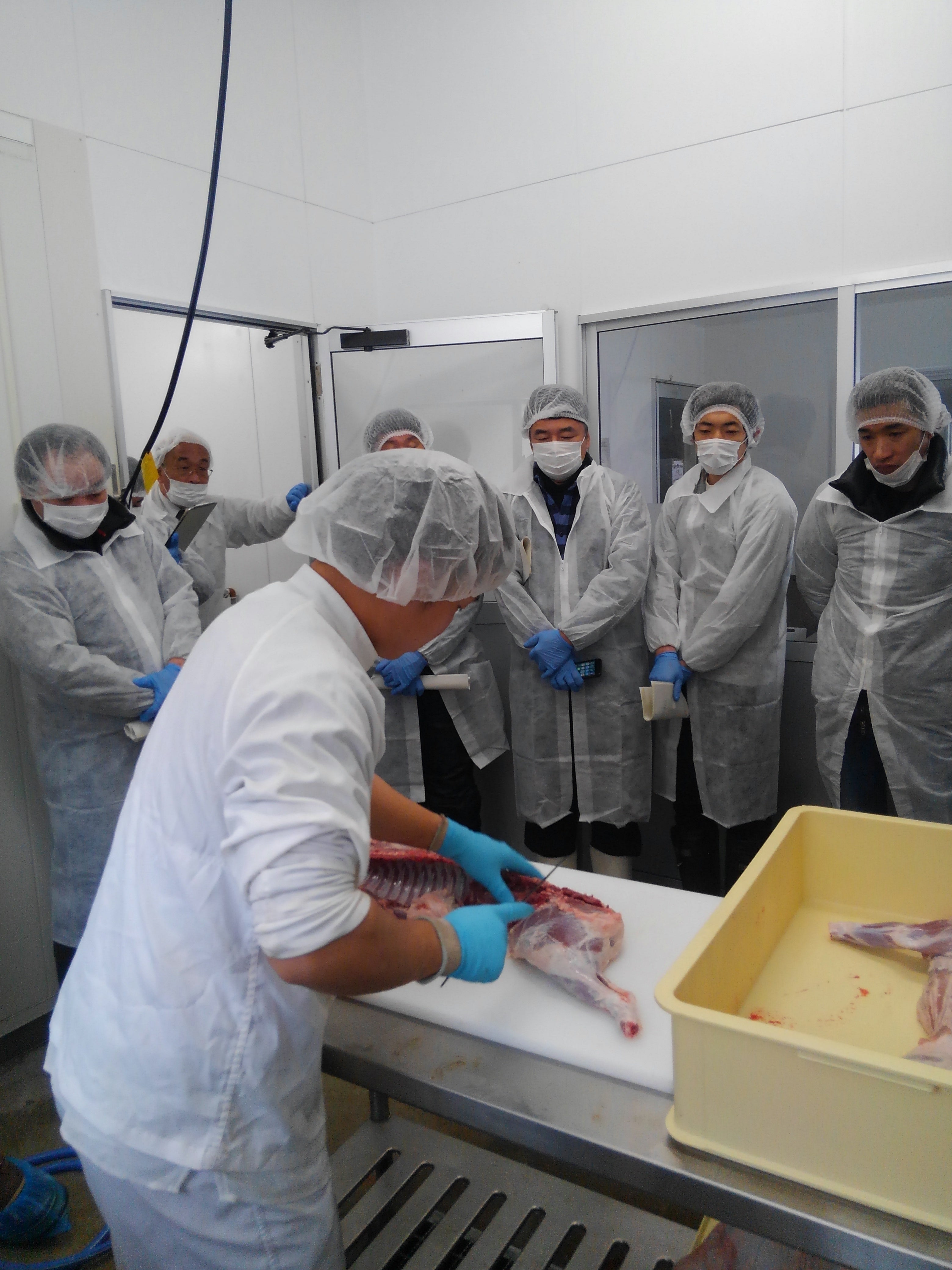 2019年 6月実施 高山市店舗向けジビエ解体講習会。ジビエを扱うイタリアン、和食、フレンチのシェフが並ぶ 写真は次男 政亮