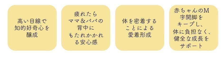 抱っこの場合、お母さんの胸部しか見えませんが、おんぶは高い位置から大人と同じ目線で、前・横・斜めさまざまな視野で、おんぶをし歩くだけで体験型の知育教育ができ、赤ちゃんの知的好奇心を育ててくれます。