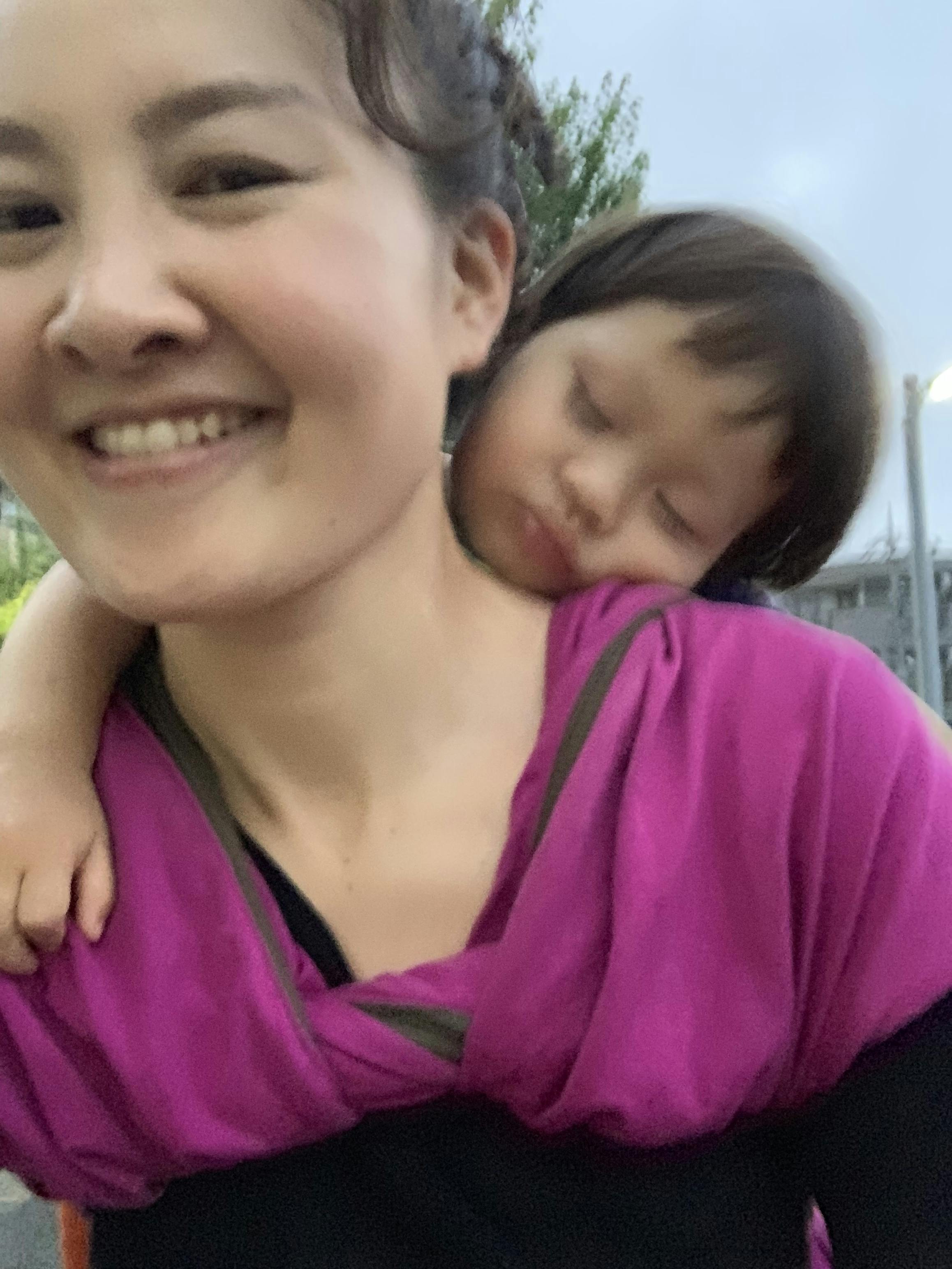 ベビーカーだと、見える世界の位置が低い上に、ママの温もりも感じられないですよね。密着面積が広いおんぶは、温もりが感じられて愛着形成に良い影響があり、下記添付画像のようにおぶって数分で子どもが寝てしまうこともしばしば。