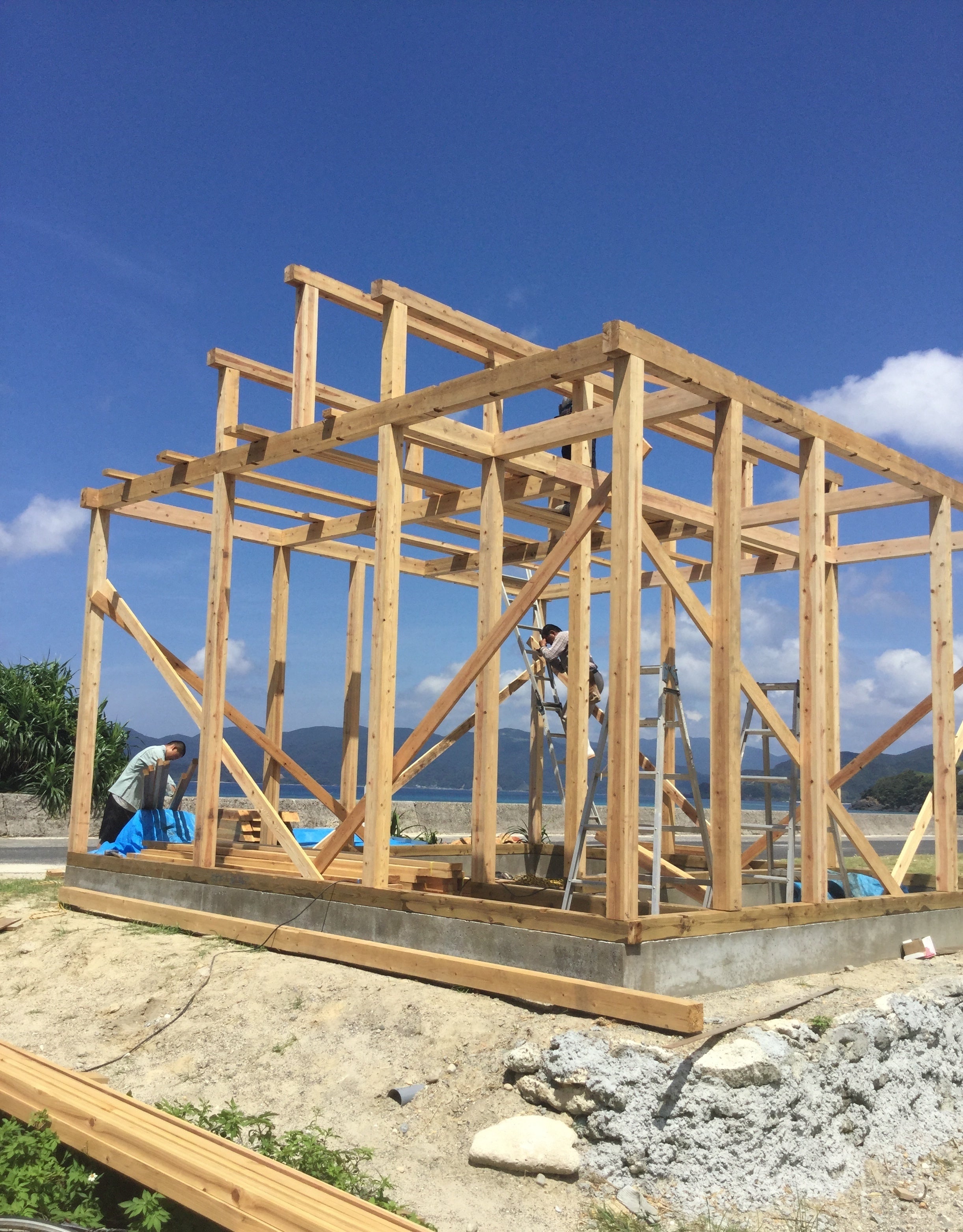 こちらは、建設途中のやどんカフェですが、同じような感じでコテージを建築予定です。