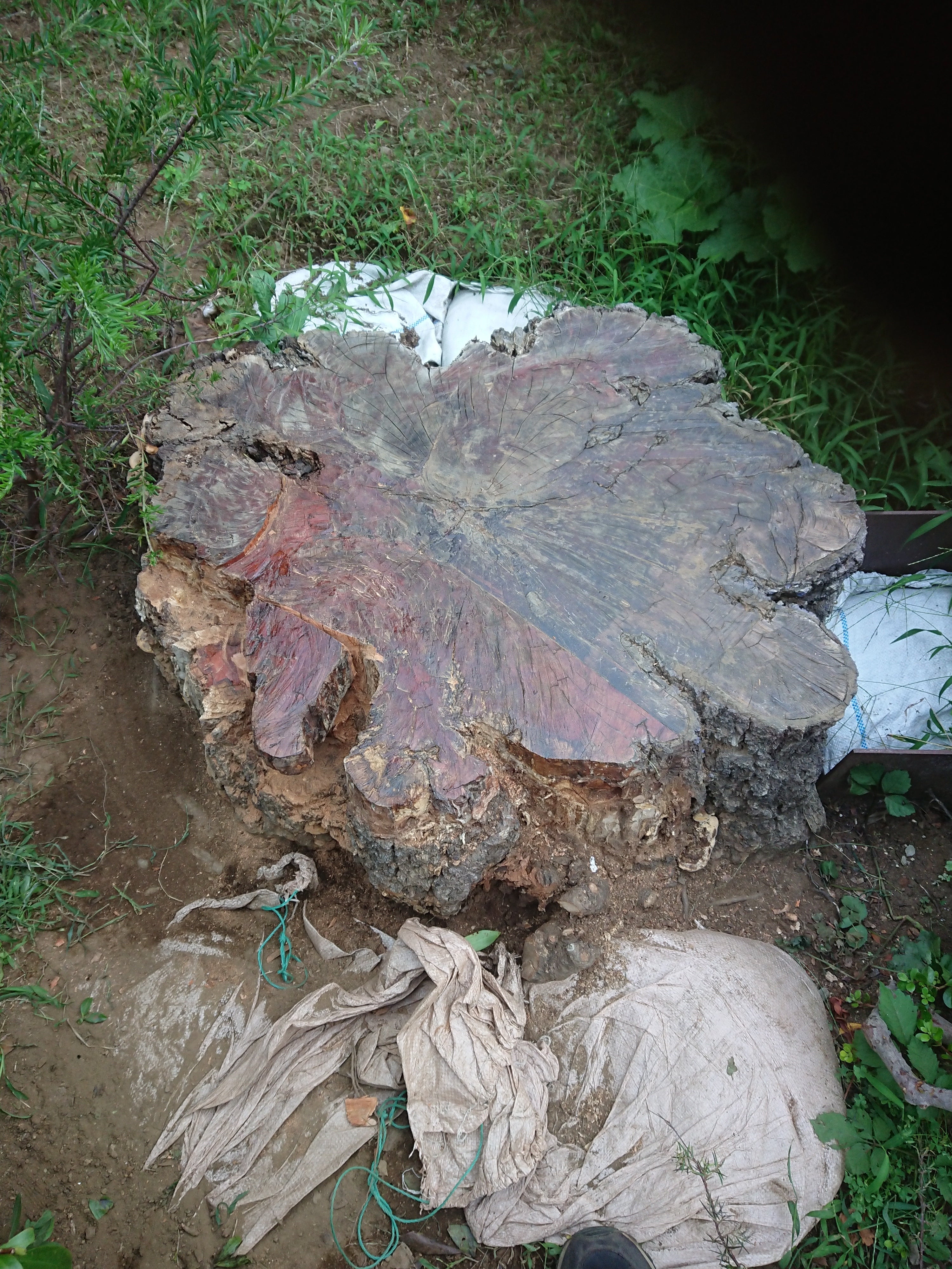 今日は西の方向が霞んでいて富士山が見えませんでした。ちょっと寂しかったです。 お話変わりますが今日も普段の国立での取組の紹介をさせていただきたいと思います。 今日は、国立市の大学通りで伐採された桜の株から標本を取りました。大きなノコギリで一度に切るのは難しいのと大きいまま染み始めた水と薬品を溶液の中で染み込ませて置き換える作業が出来ないので何分割かにして処理するため少しずつ切っています。タイトル写真は今日採取した標本を取り出す前の形を残すために撮ったものです。 下の写真は、標本を採取した後の切り株を撮影したものです。ゆっくりですが順調に進んでいます。 今朝、台風が発生したとニュースで発表されましたが、影響が出る前に富士山に行ける見込みが立って欲しいと切に願っています。 どうぞ皆様のご支援をよろしくお願い申し上げます。