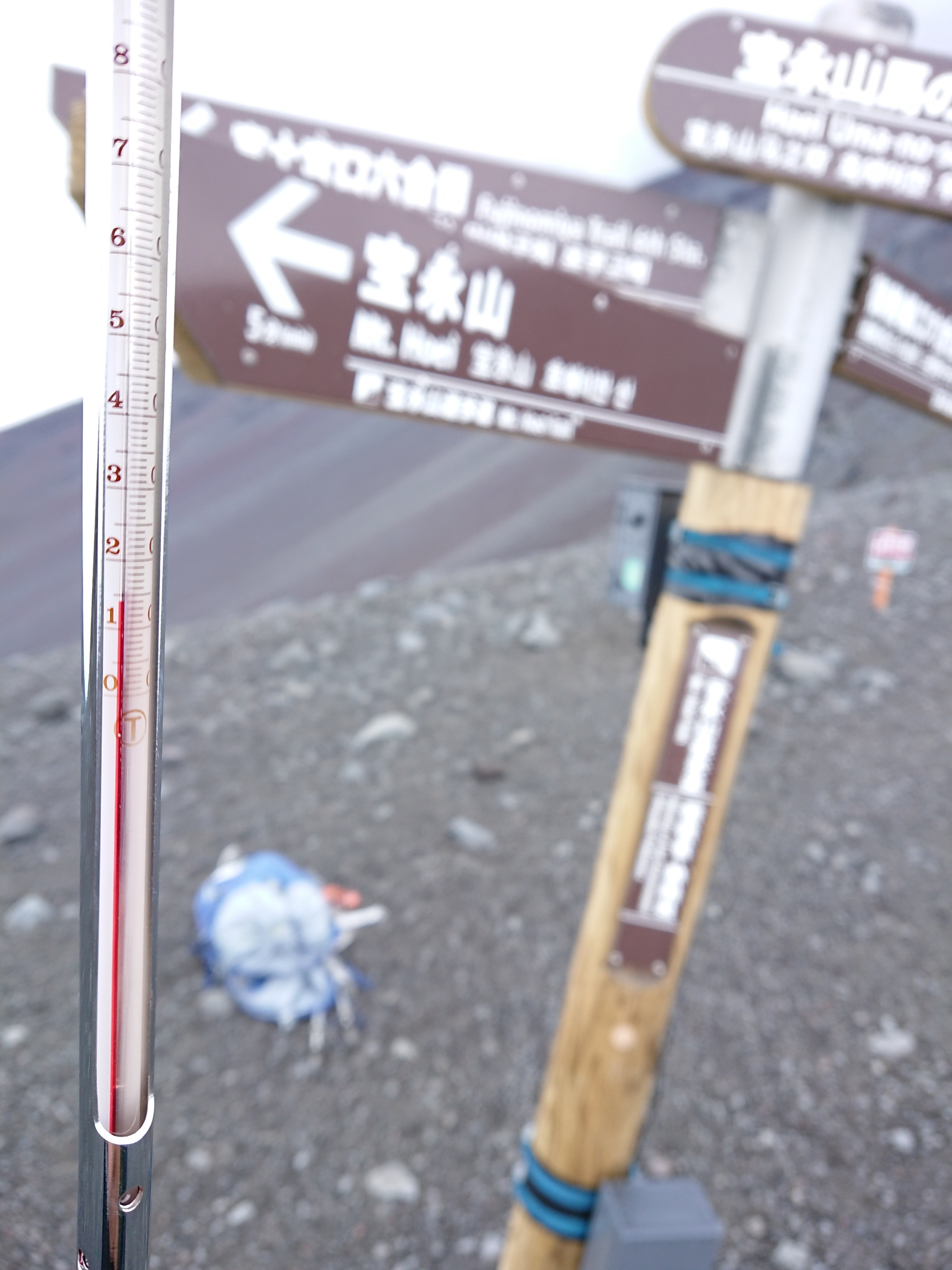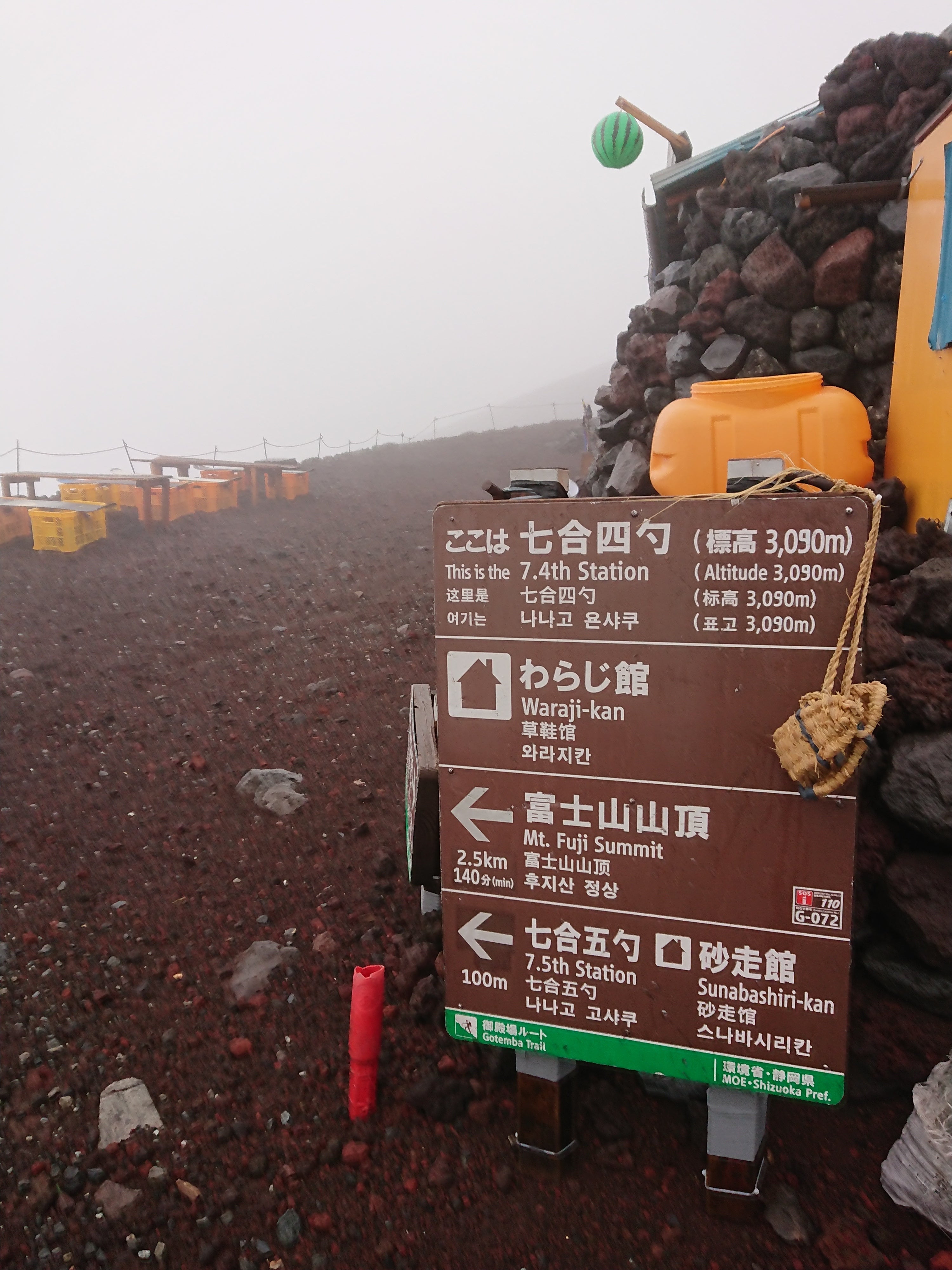 砂利道を登るのは大変でしたが、七合四勺の山小屋が見えた時はホットしました。下の写真は、翌日の下山中に撮影したものです。前日は、とんでもない暴風雨で写真が撮れませんでした。