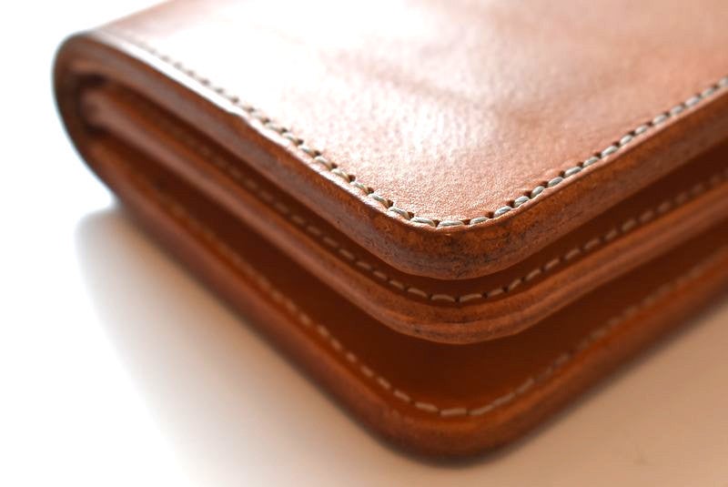 その独自スタイルは、堅牢な革財布に折り目を付ける所から使い始める。。