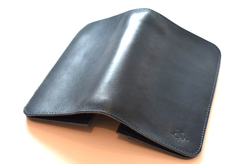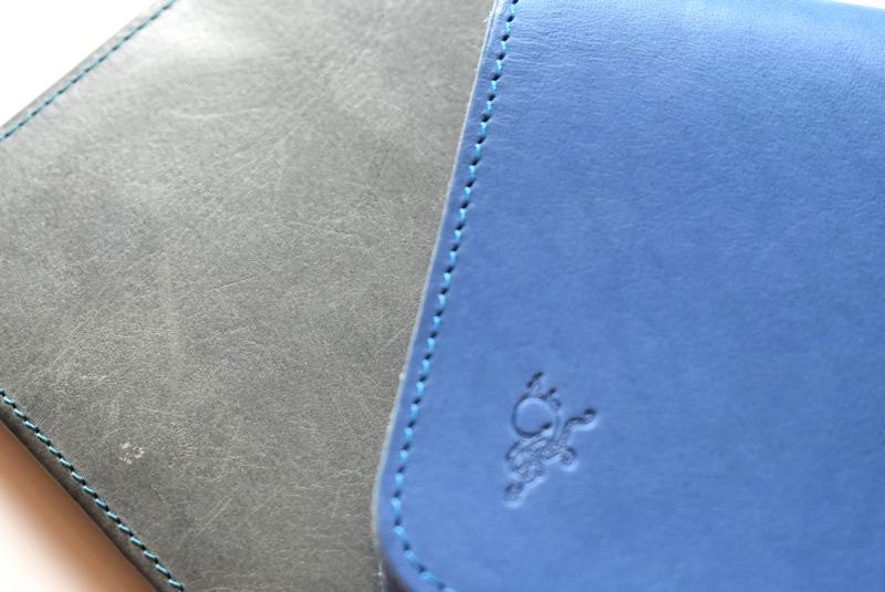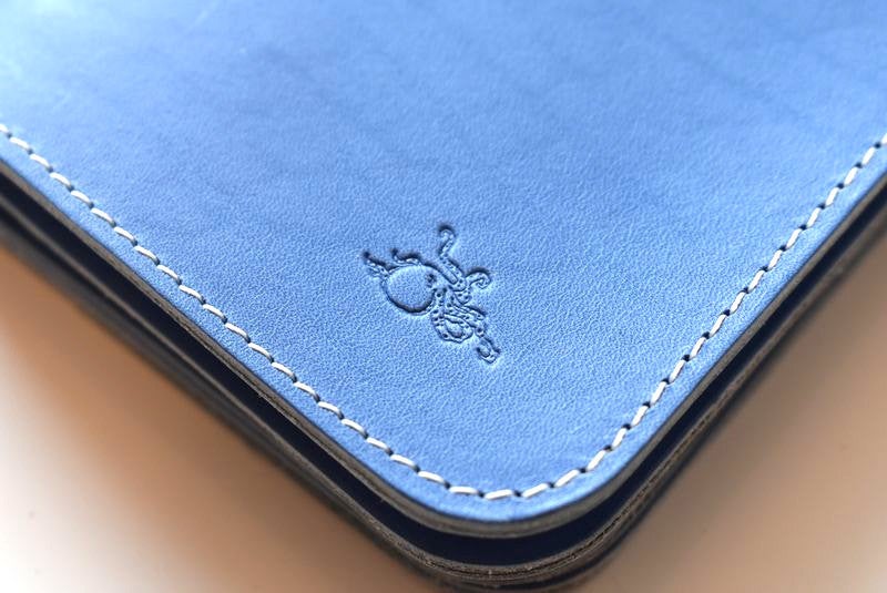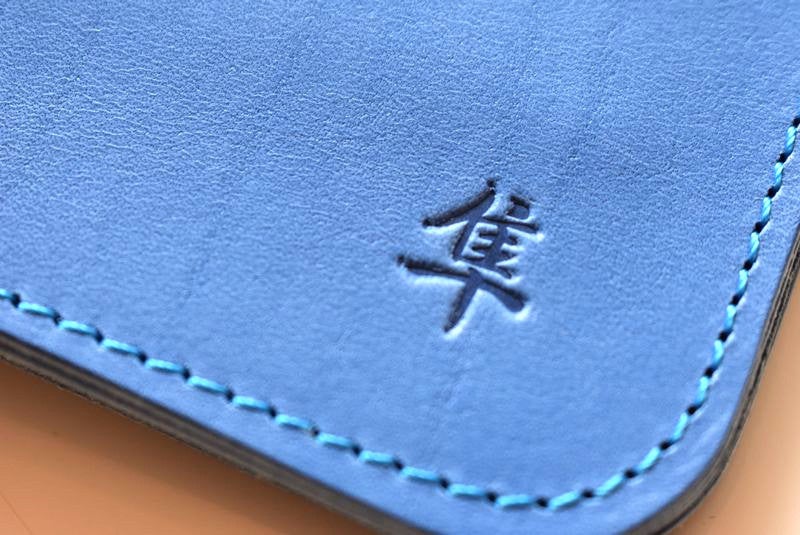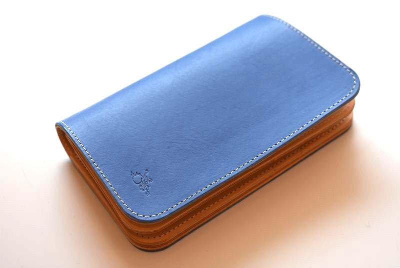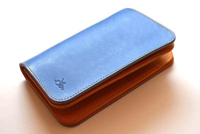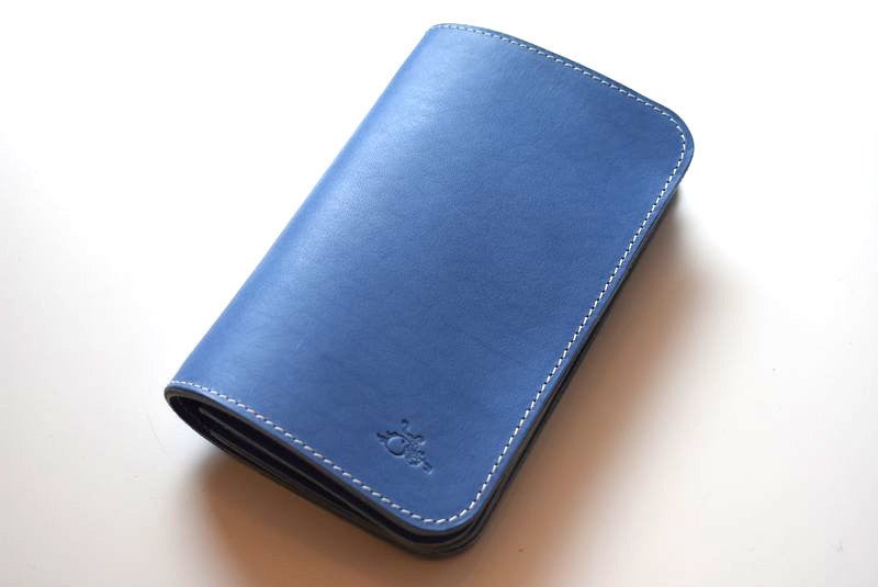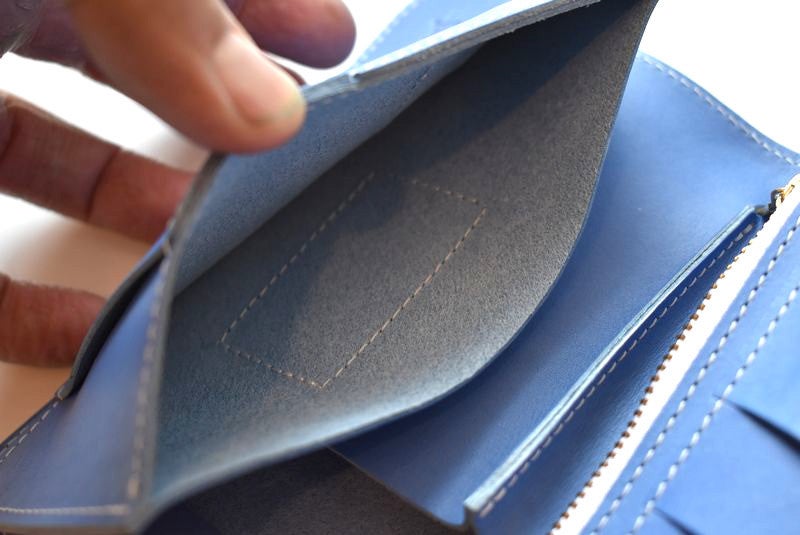 イタリア製の透き通るようなブルーの革を、熟練職人の手により、あえてミディアムウェイトに仕立てた、繊細で上品なミドルワレット。他の革財布では味わえない、一目惚れするような美しさです。