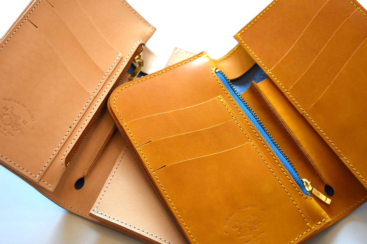 インナーにはイタリアンKING"ブッテーロ"・ベルギーQUEEN"シルクサドル"の2種類をご用意致しました。2つの異なる経年変化が混じりあう魅惑の革財布です。
