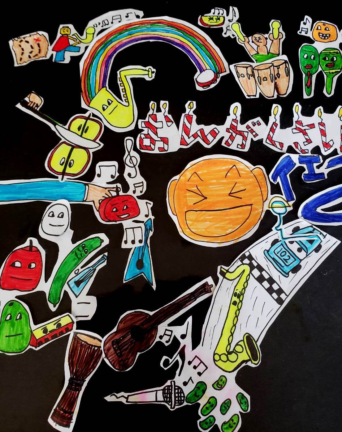 このトップページの画像は、このADHD(注意欠陥・多動性障がい)の知的障がいの子どもが描いた音楽フェスの様子です。
