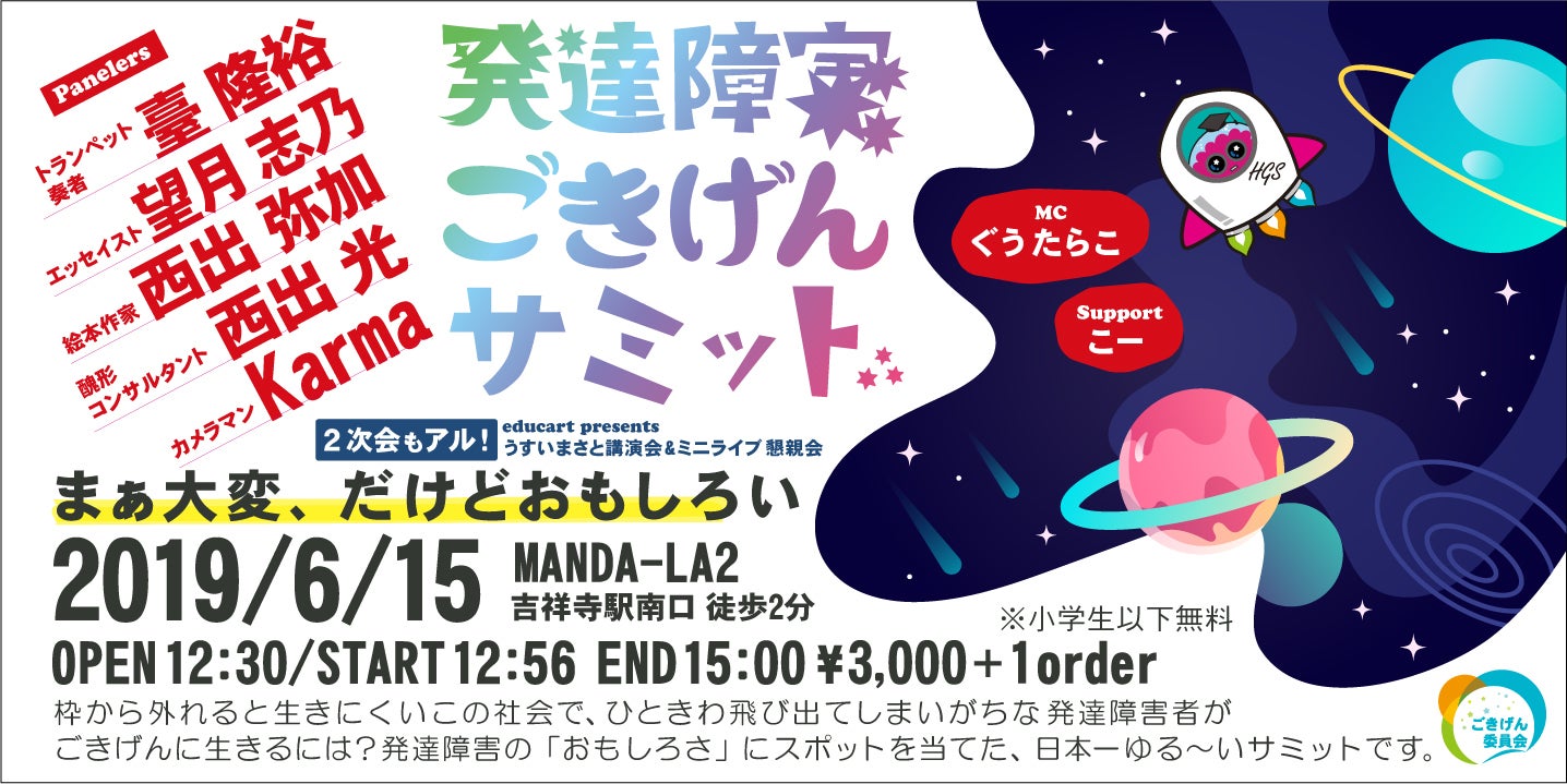 最近の私たちは、『「ベビ待ち」ってなんだよ!』の著者ぐうたらこさんと3人でチームを組み、『発達障害ごきげんサミット』を開催しました。「天才」や「生きづらさ」にスポットが当たりがちな発達障害を、「ごきげんに生きたい」という切り口で捉え直してみようという試みでした。