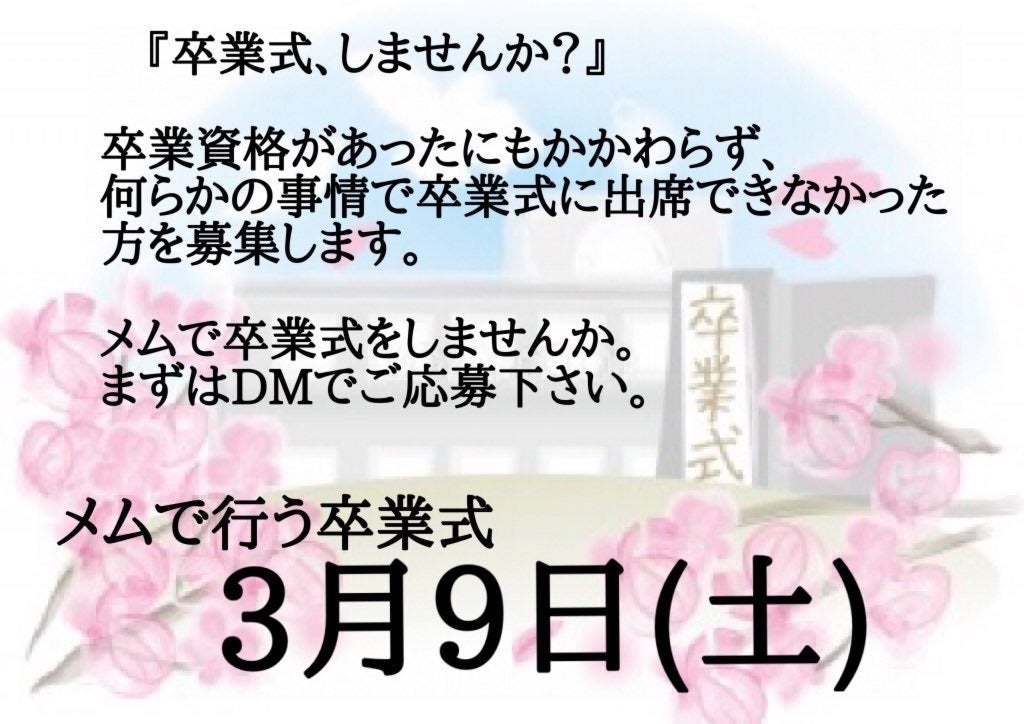 メムでは、卒業資格があったにも関わらず何らかの事情で卒業式に出席できなかった方々のために、オーダーメイドの特別な卒業式が開かれることとなりました。