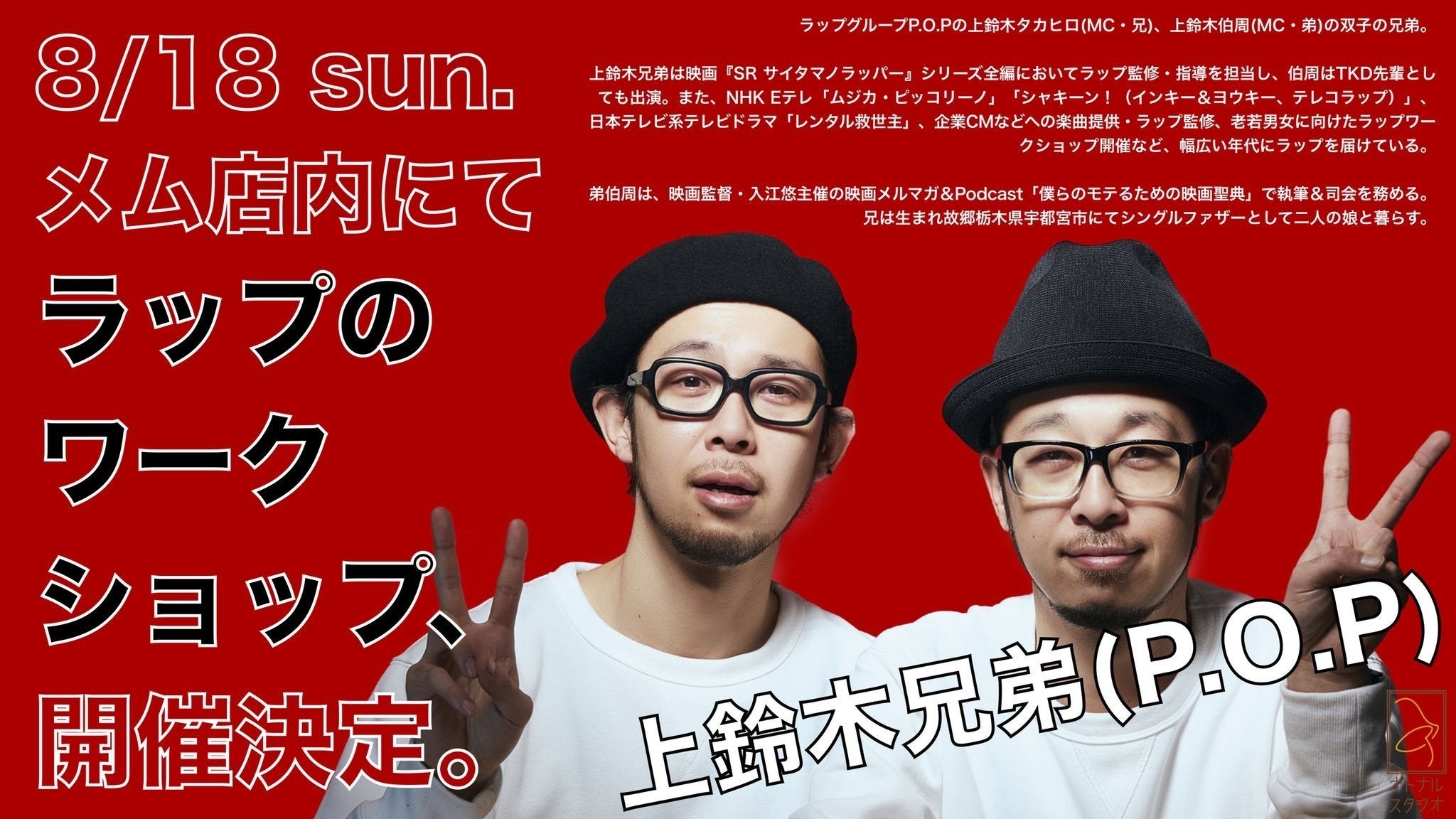 それでは、メム、もしくは2階のオトナルスタジオでお会いしましょう。