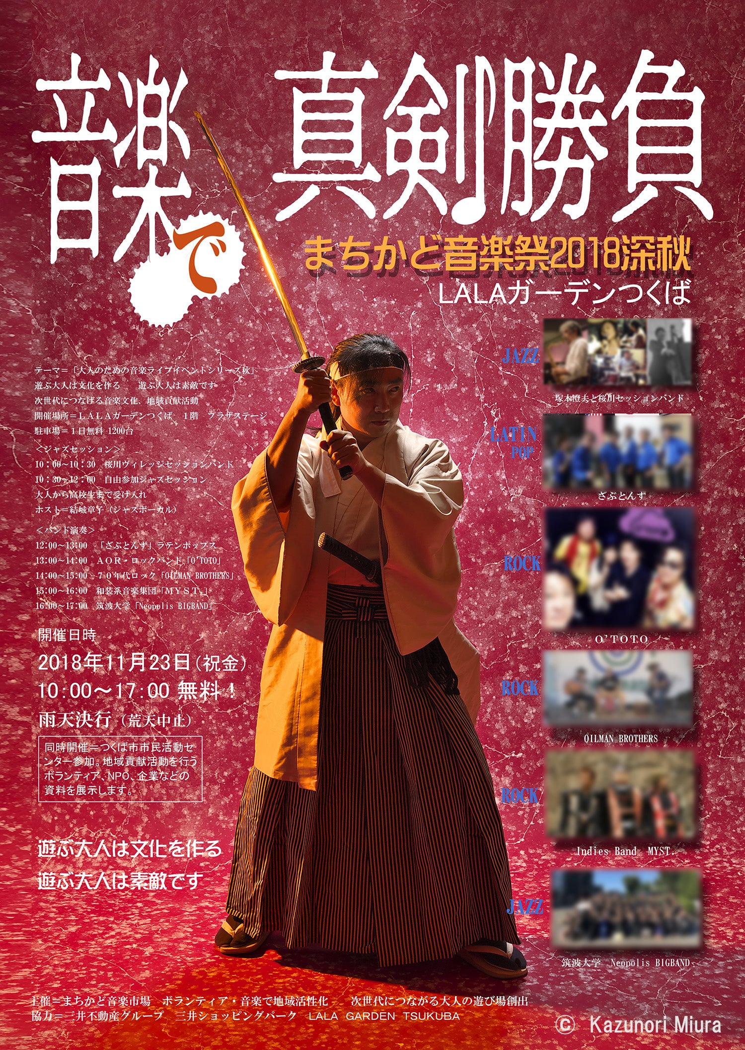 ロックからジャズまでの多ジャンルで、大人が楽しみ、そんな大人の背中を見て育つ未来の子供達が楽しく生活できる街を目指します。