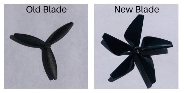 写真左は昨年の旧版「blö」の送風羽、右が新版「blö 2.0」の送風羽