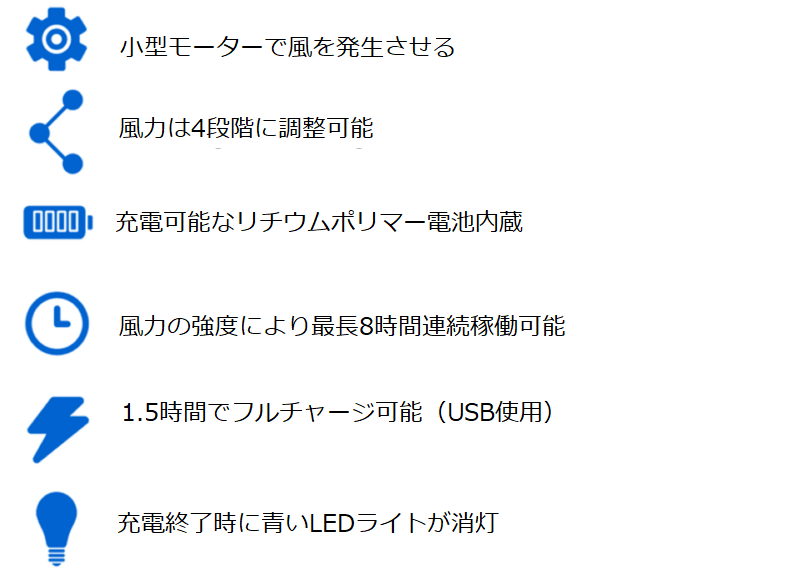 上記の画像でわかるように、「blö 2.0」を首の後ろに装着して2分間送風した結果、体表温度が79F(約26℃)から73F(約23℃)まで下がっています。クーラーとしてはとても効率的です。