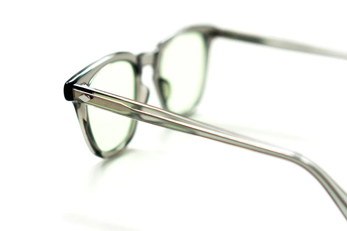 今回は、目の悪くない方にもご参加いただけるよう、本プロジェクトの為にレンズを特別に染め上げ、サングラスとして製品化を行います。レンズからーは60's GI GLASSESに入っていた色入りメガネの色を忠実に再現。視感透過率79%のヴィンテージグリーン。フレームの雰囲気に合うよう職人の手で一つ一つ染め上げ、テンプルも同様にヴィンテージGI GLASSESを参考に作り込んでいきます。