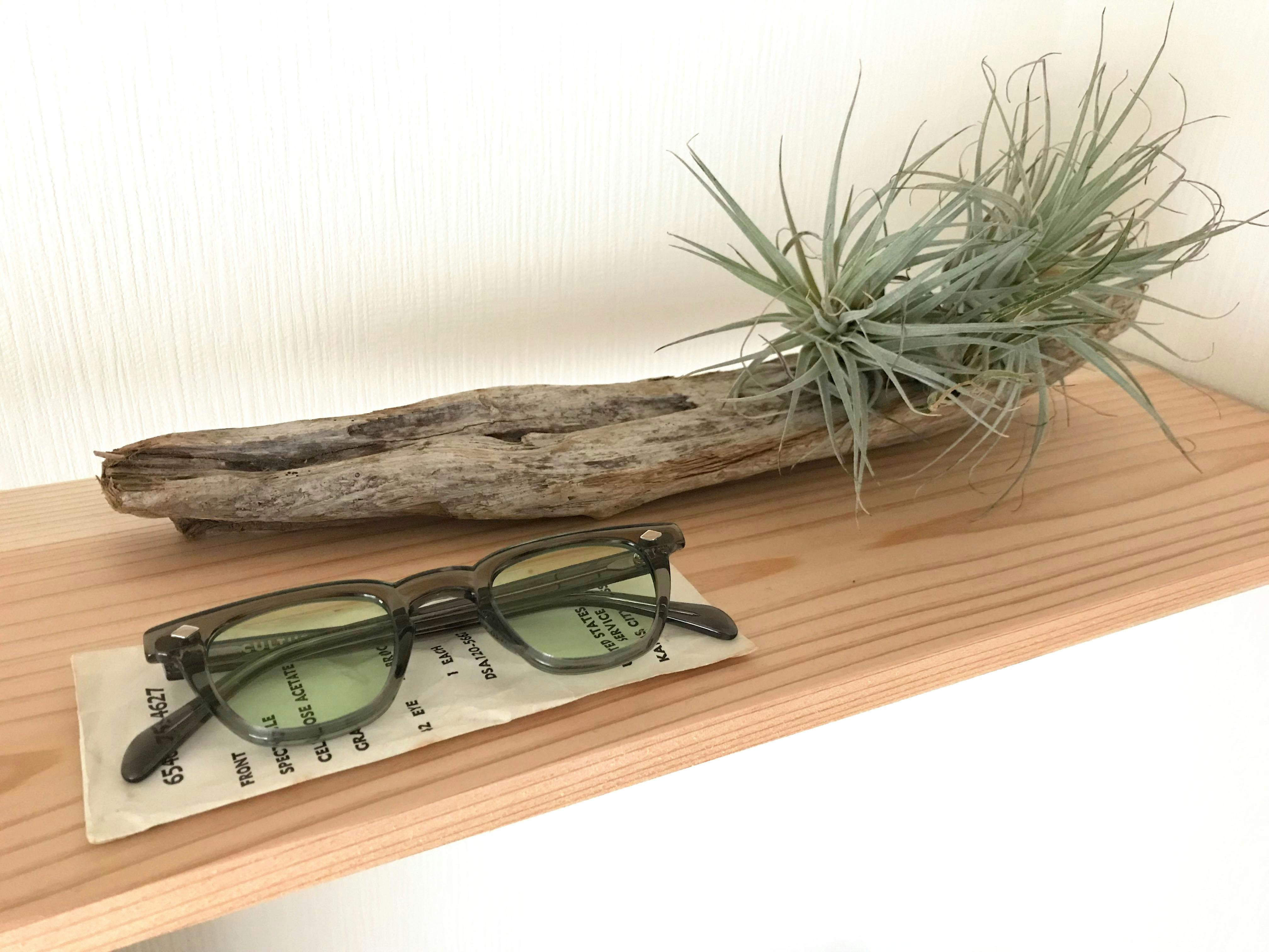 今回のGI GLASSESは60年代第二次世界大戦後生産されたもので、それ以前のワイヤータイプのフレームから、セルロースアセテートに変更となった歴史的に貴重な資料です。このクリアグレーのモデルは68年に生産が終了となっており、コレクターズアイテムとしても高い人気を誇ります。未使用デットストックの場合、5万円前後、状態が良いとそれ以上で取引されています。
