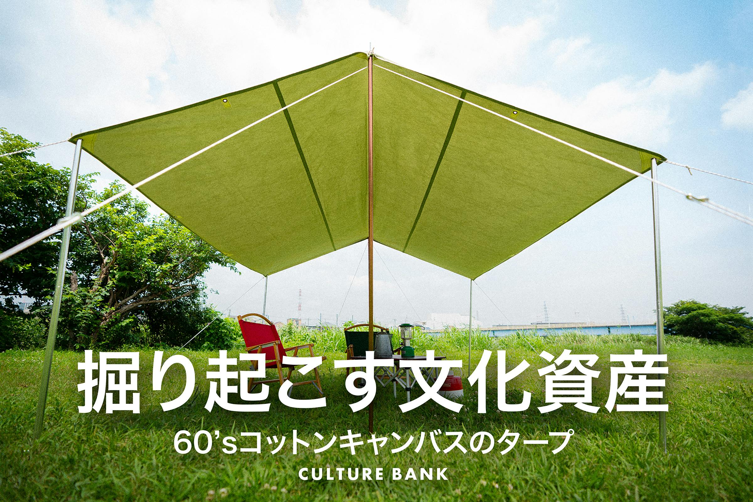 2020/10/01 15:22前回はLAで見つかった廃棄寸前の米国GI GLASSESパーツを製品にすることで、一次資料を守り抜こうというプロジェクトを立ち上げさせていただき、沢山のご支援をいただきました。その後も皆様にご協力いただき、GI GLASSESの残りもわずかになっております。誠に有り難うございました。この度は前回とはまた少し違う形で文化資産にフォーカスしたプロジェクトを立ち上げました。60年代のキャンバスで作るアウトドア用のタープになります。色々な場所にある事実を点と点で結んでいくことで、歴史が浮かび上がり、未来へ繋がっていくと考えています。■ プロダクトマネージャー時代の製品やカタログ資料米国のアウトドアブランドでプロダクトマネージャーをしていた時に資料として集めた、ヴィンテージのキャンプギア。様々な年代のものを収集する中で、ポリエステルやナイロンの進化も凄まじいが、実は伝統的なコットンキャンバスもかなり優秀なのでは無いか、と思ったのがきっかけです。また、60年代当時の米国生地事情を調べていくと、日本のキャンバス工場に紐づいていた事を知り、その興味から老舗キャンバス工場タケヤリにお声がけさせていただきました。更に、当時の資料からモノを作るという無理な要望も受け入れていただき、共同で研究&分析し、プロジェクトを進めることができるようになりました。実際に当時のものを調査していくと品質がとても良いこともわかり、製品として復元し、文化資産として残していくことに価値があると確信しました。今後、本物のヴィンテージコットンキャンバスを使ったコットンタープが作れる機会は、多くない(ほぼないのでは?)と思います。本プロジェクトは、日本の技術に裏付けされた歴史文化を残す大切な役割だと信じています。■ 工場への支援最後に、コロナより前から進めていたプロジェクトですが、コロナによる景気後退と共に現在工場への発注は減り、ますます工場経営は過酷な状況になっております。今この状況で日本の歴史的工場維持をサポートすることも、私たちCULTURE BANKの重要な役割だと思っています。何卒、宜しくお願い致します。 もっと見る