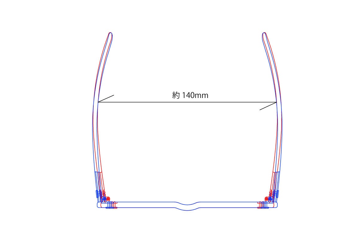 S,M,Lは、はめこむレンズのサイズです。どのサイズも、メガネ自体の幅は日本で販売されている一般的なサイズ、約140mmを設定していますので多くの方にご利用いただけると考えています。