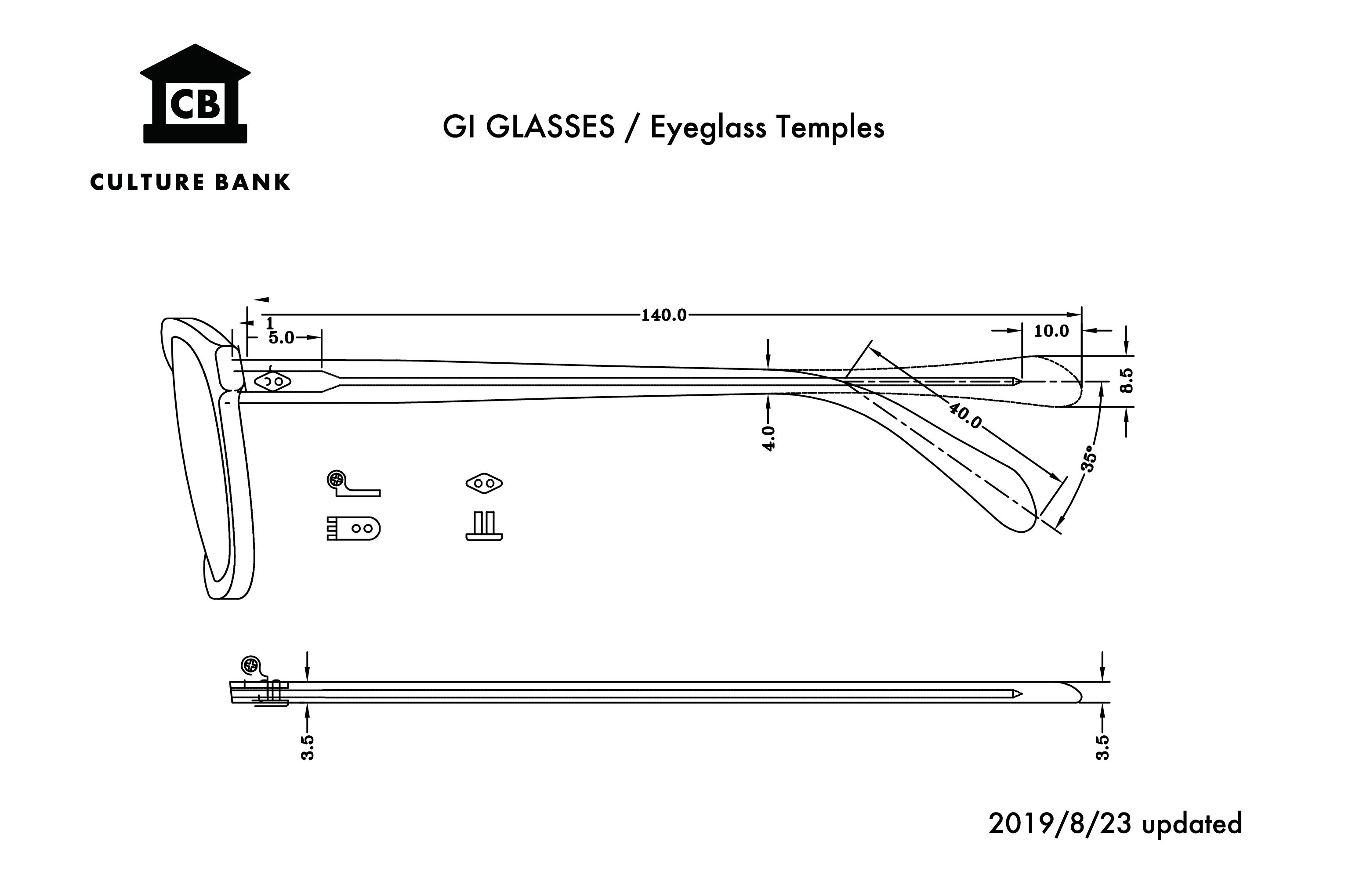 前回の活動報告でお伝えしたテンプルの使用について、詳しい図面が上がりましたのでお知らせいたします。ダイヤ型のカシメも作成し、形状もよりオリジナルに近いものになっています。プロジェクト詳細にも書いていますが、接着で飾りだけのイミテーションリベットが多い最近のメガネですが、蝶番をしっかりと留めつける仕様になっていることが図面からも見ていただけると思います。ヴィンテージリムと、作り込んだテンプル、純粋に作りが良いのも魅力だと思います。