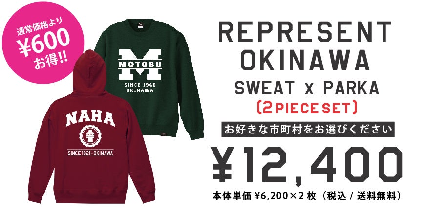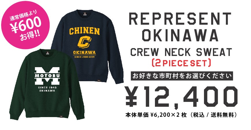 REPRESENT OKINAWA T-SHIRTSと、CREW NECK SWEATを1枚ずつお届けいたします。