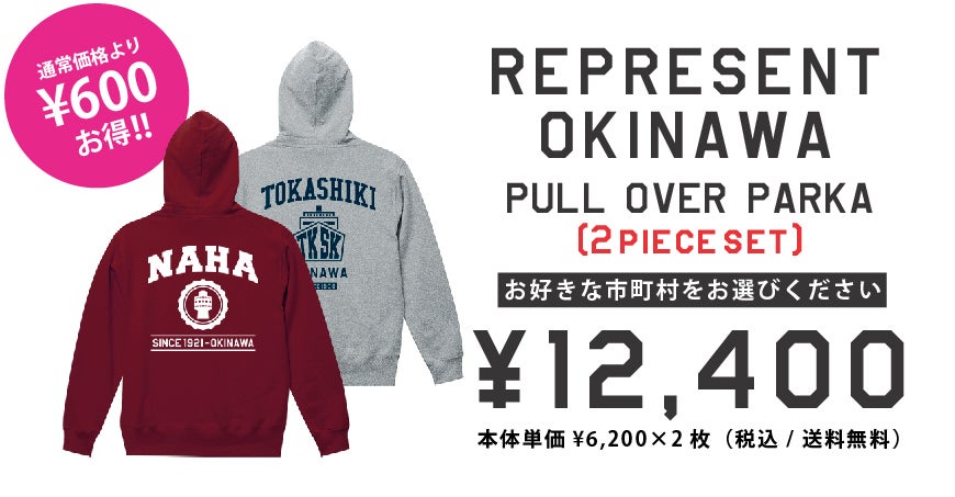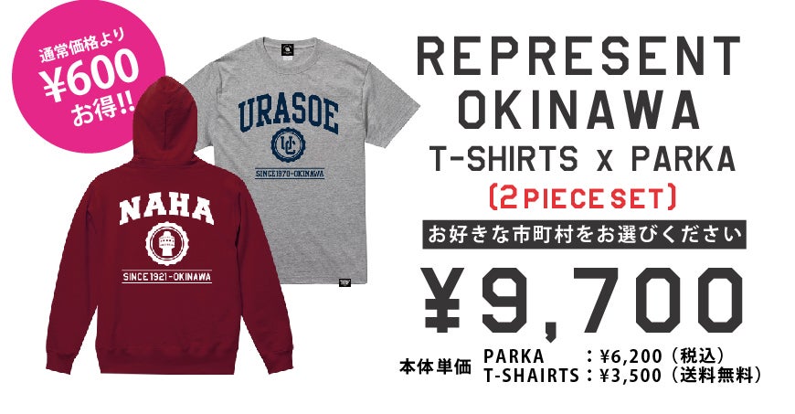 REPRESENT OKINAWA T-SHIRTSと、PULL OVER PARKAを1枚ずつお届けいたします。